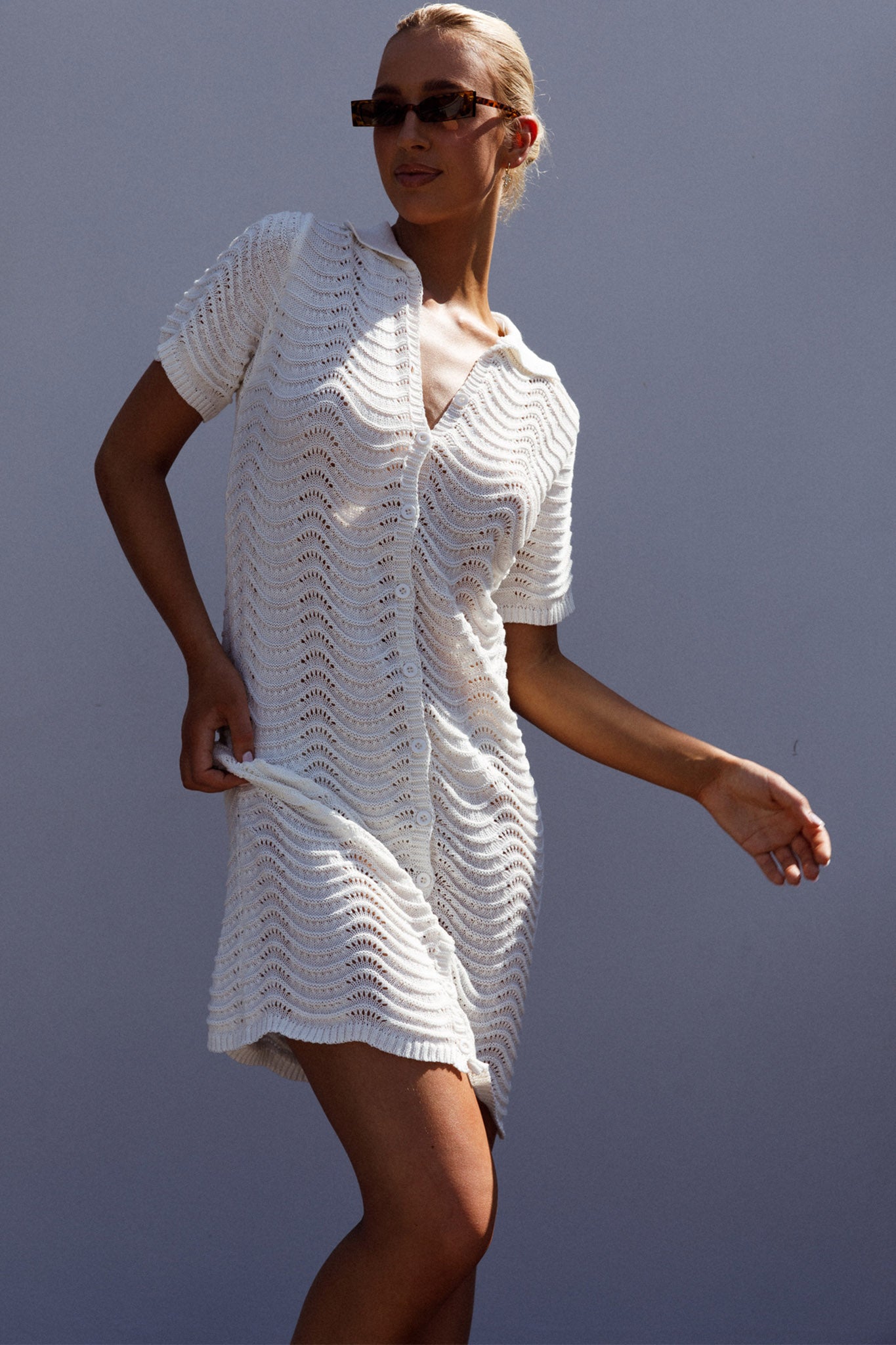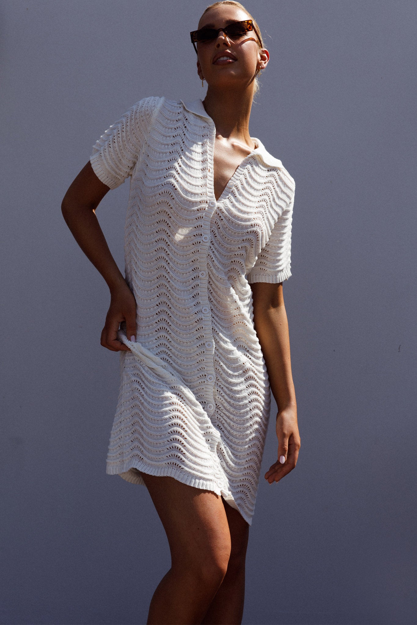 Breeze through your day in our super cute Glennon dress. We are loving its soft, knit fabric and chic, shirt style. Perfect for a beach day, thrown over your bikinis or wear it to coffee with your girls teamed with short and sandals.