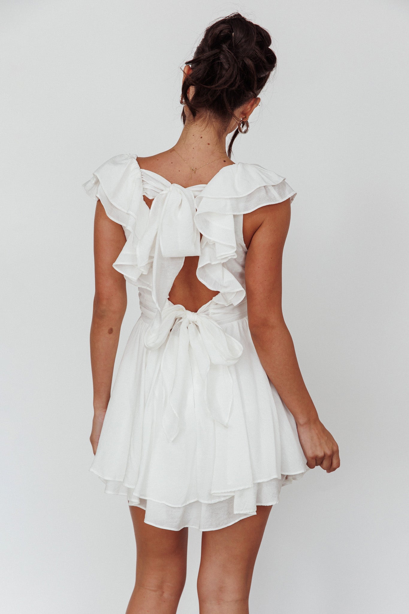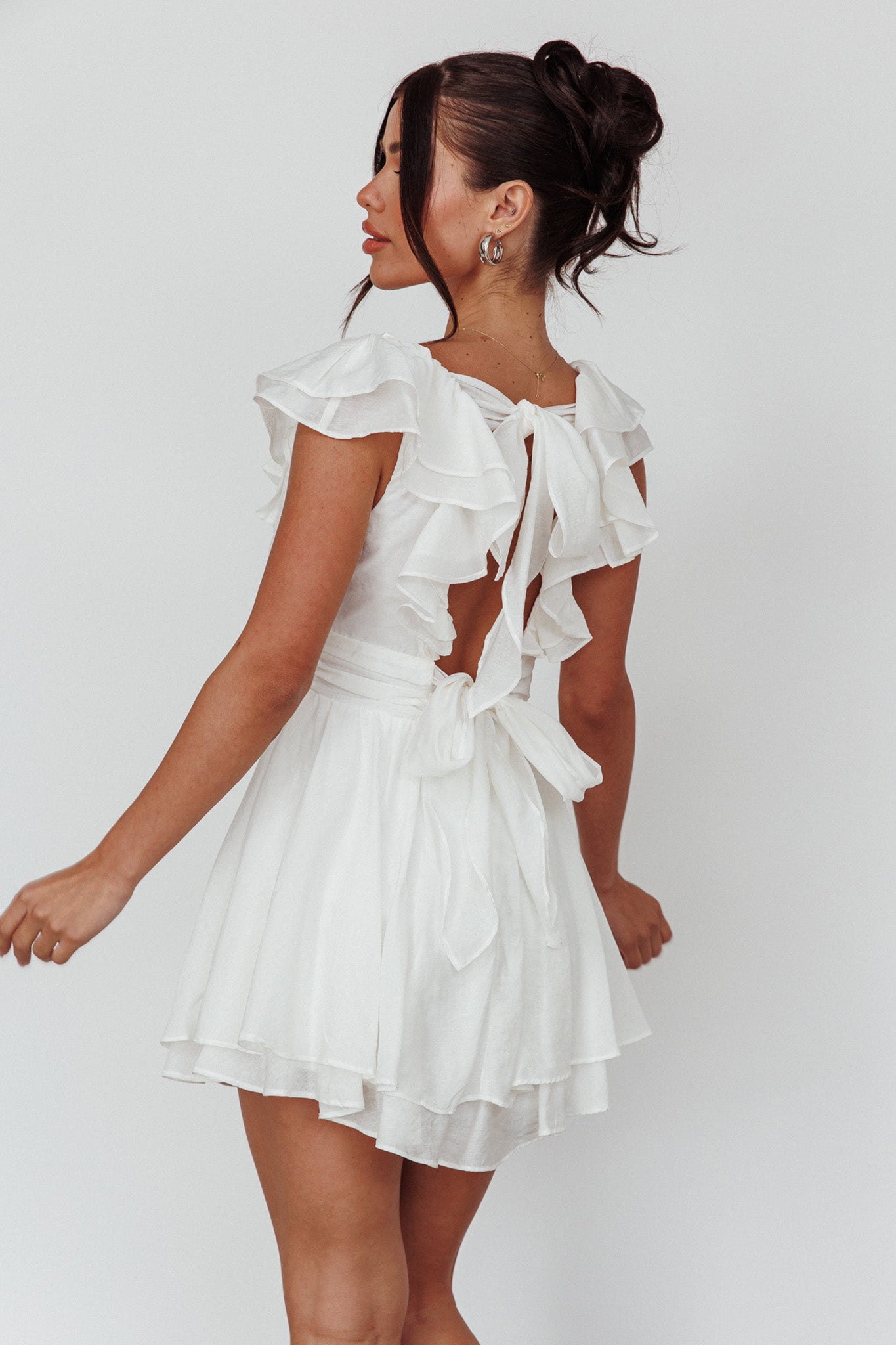 Steal the show in our super cute Glory Days romper. We are in love with its feminine ruffle shoulders and ties in the back. Perfect for a flirty date night with your love. Team it with mule and a saddle bag for a chic look we are all about.