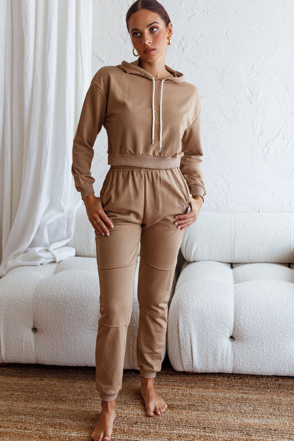 Glow Getter Elasticated Waist Embroidery Logo Jogger Pants Beige