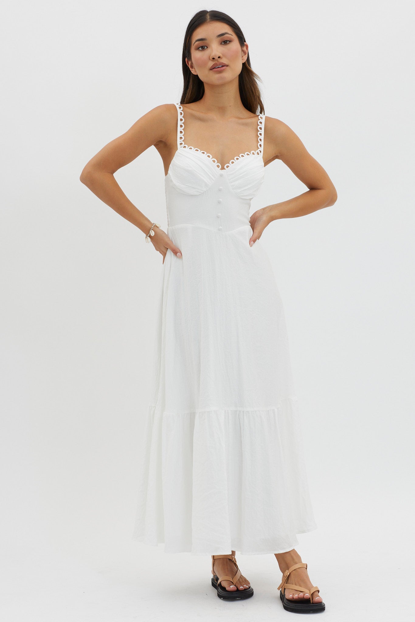 Golden Suns Scallop Trim Midi Dress White