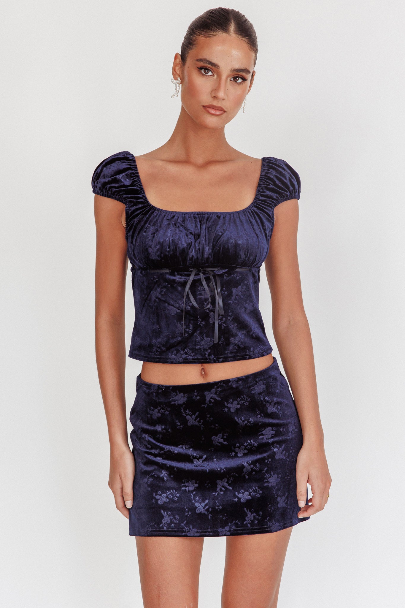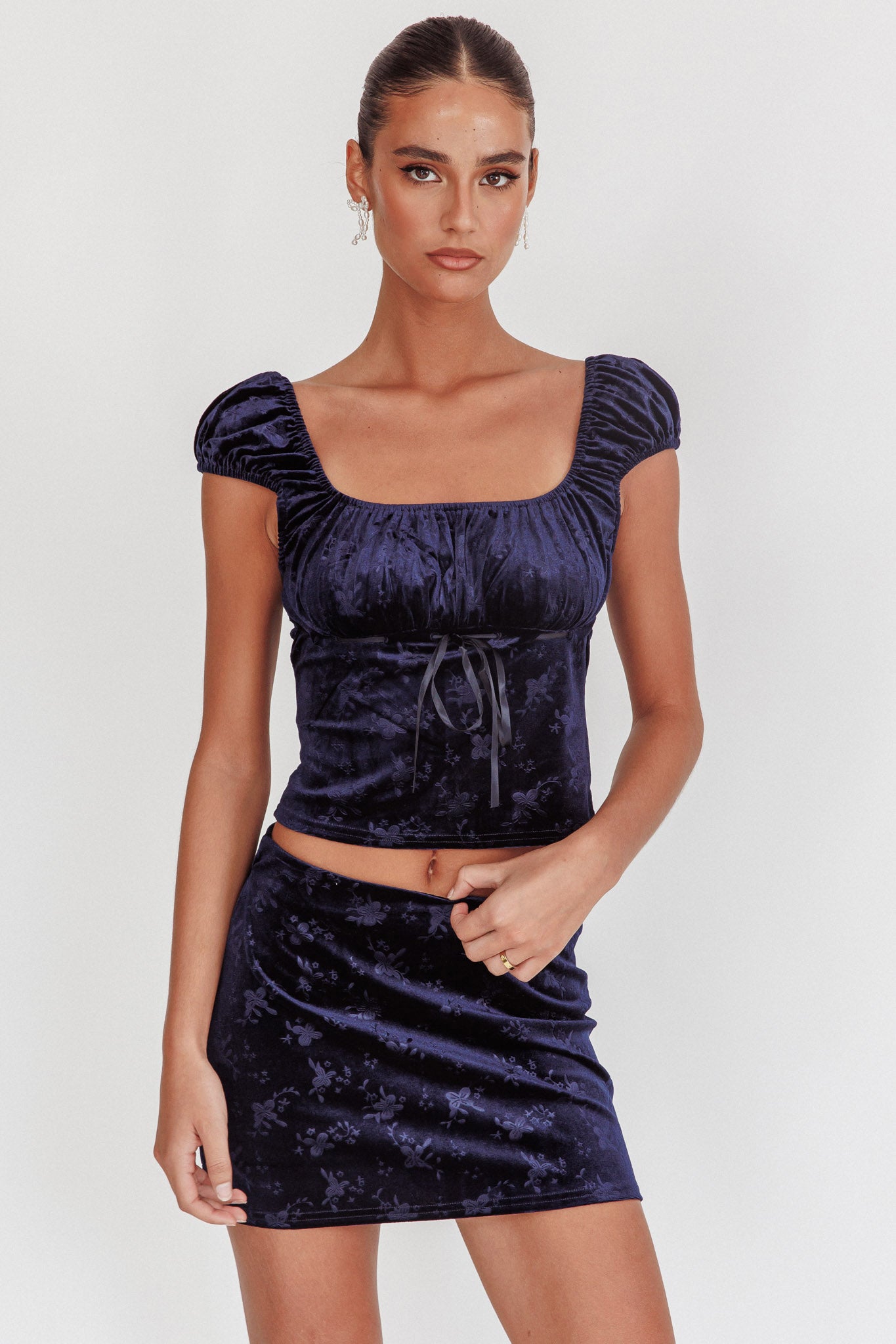 - Navy velvet top