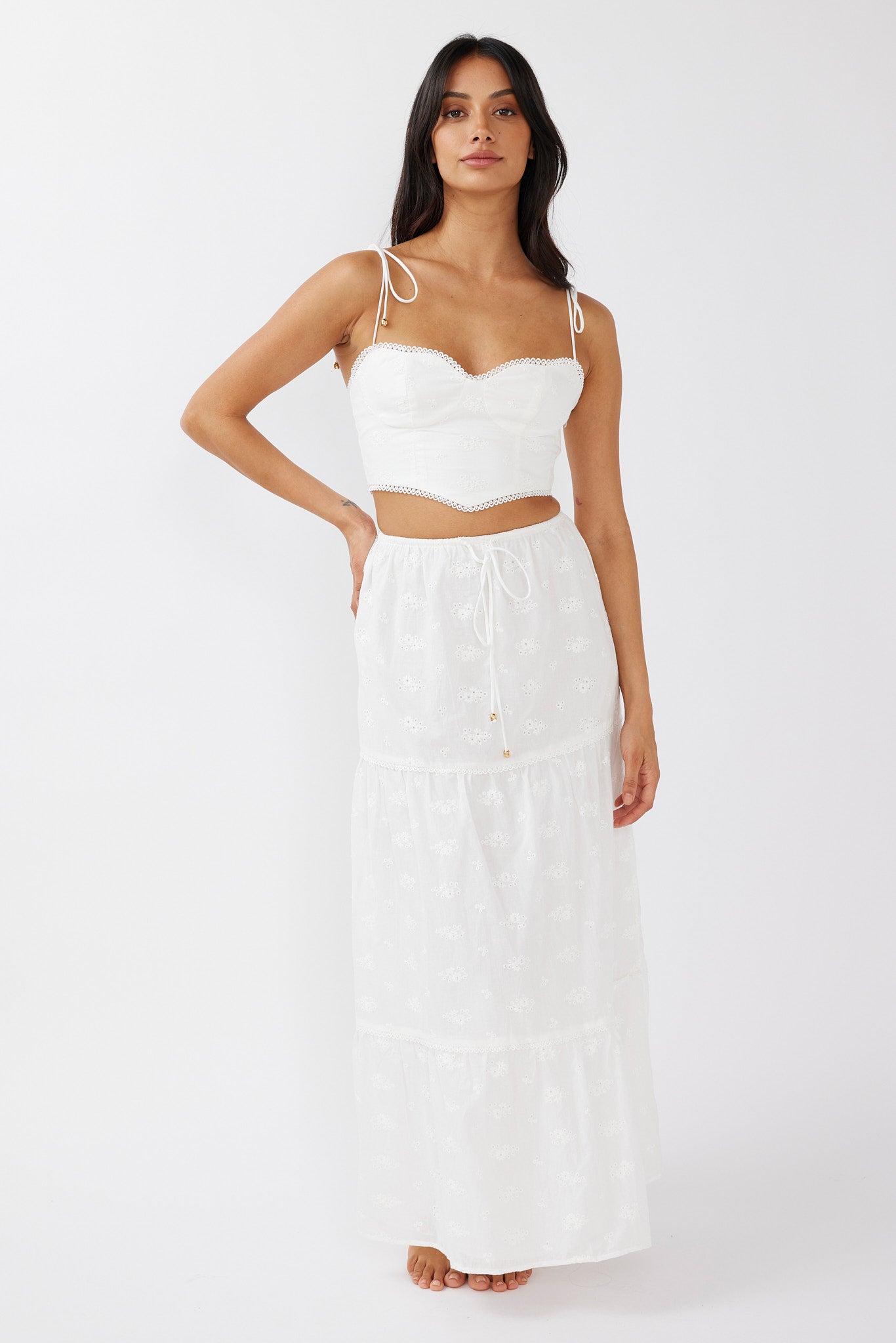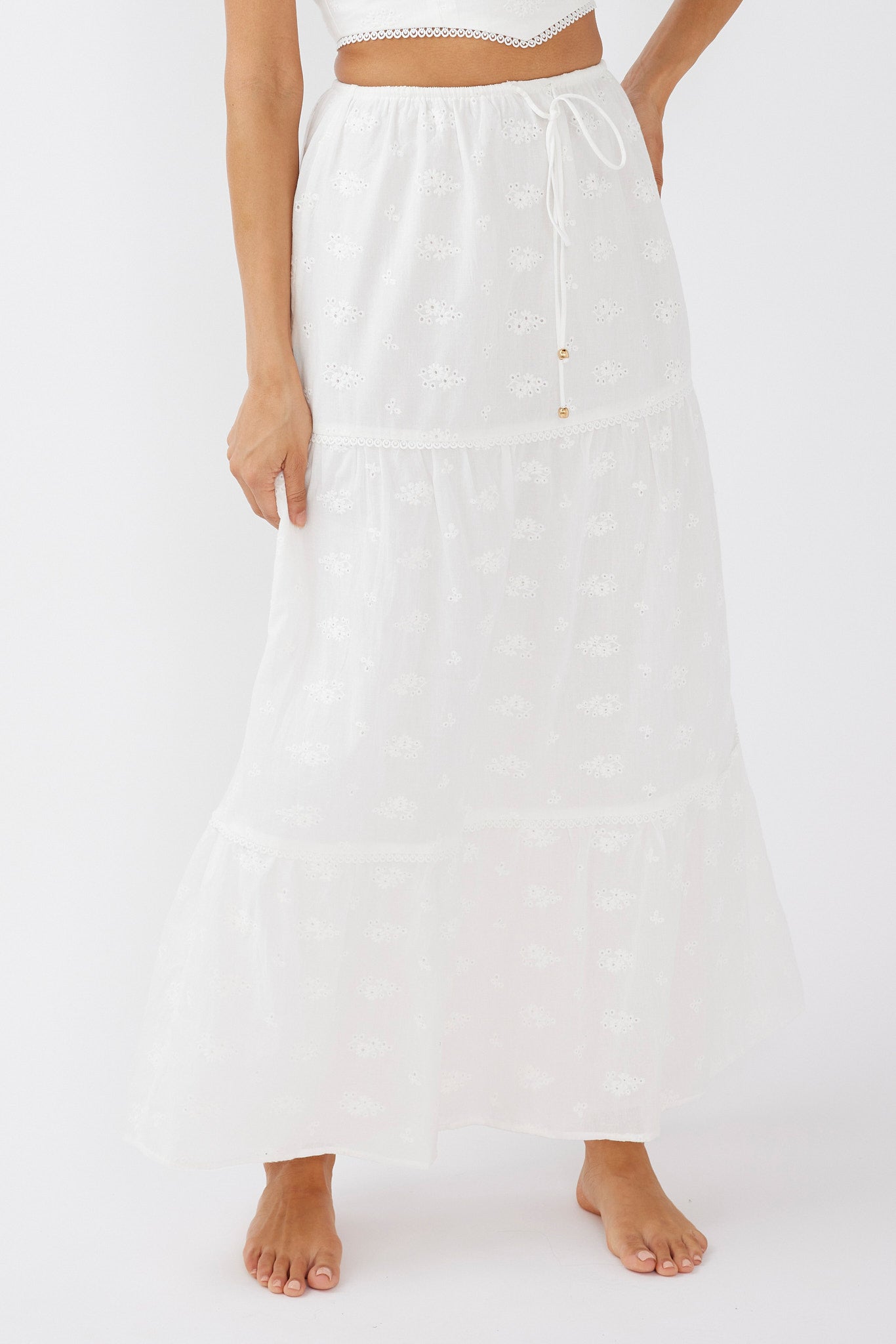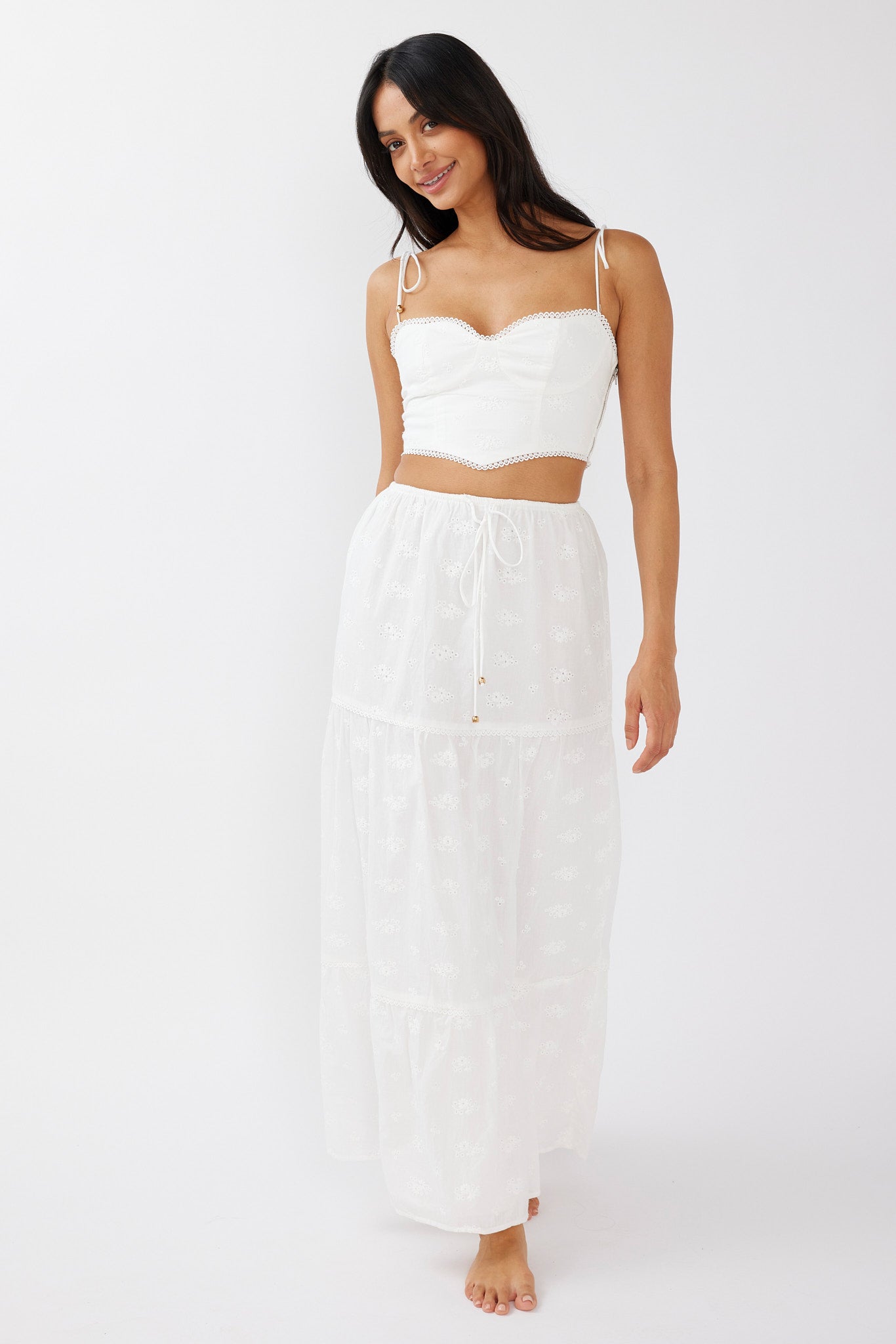 Gracelyn Drawstring Embroidery Maxi Skirt White