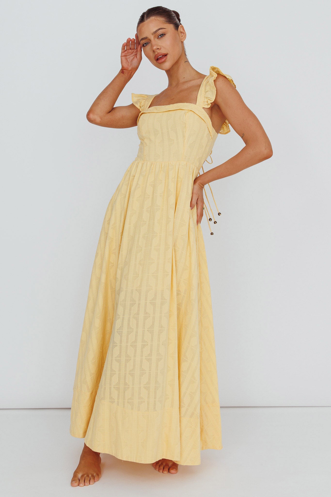 Greatest Hits Ruffle Strap Maxi Dress Yellow