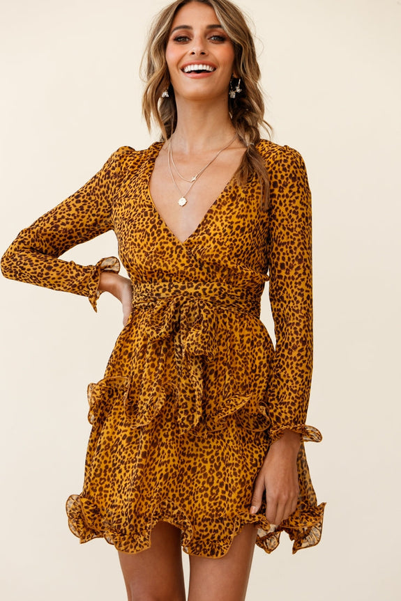 Make an entrance in our pretty and ultra feminine Greta dress. Featuring a V-neckline, long sleeves, flattering wrap front and tiered ruffles around the skirt. We love the soft chiffon fabric with unique crinkled texture. Team it with knee-high boots and gold hoops for a look we are loving.