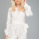 Dream in Black! These beautiful petals flutter into the perfect outfit! Floral cutouts and intriguing neckline transform this romper into a wonder! Pair with black high heels.