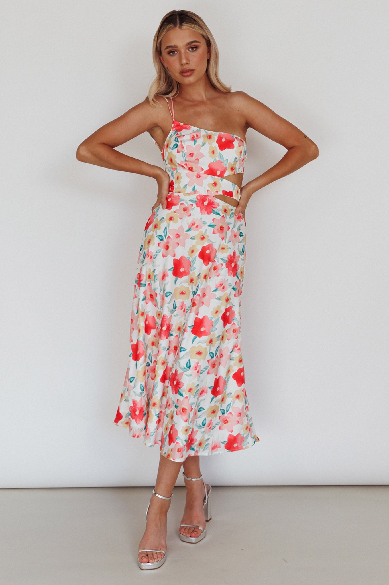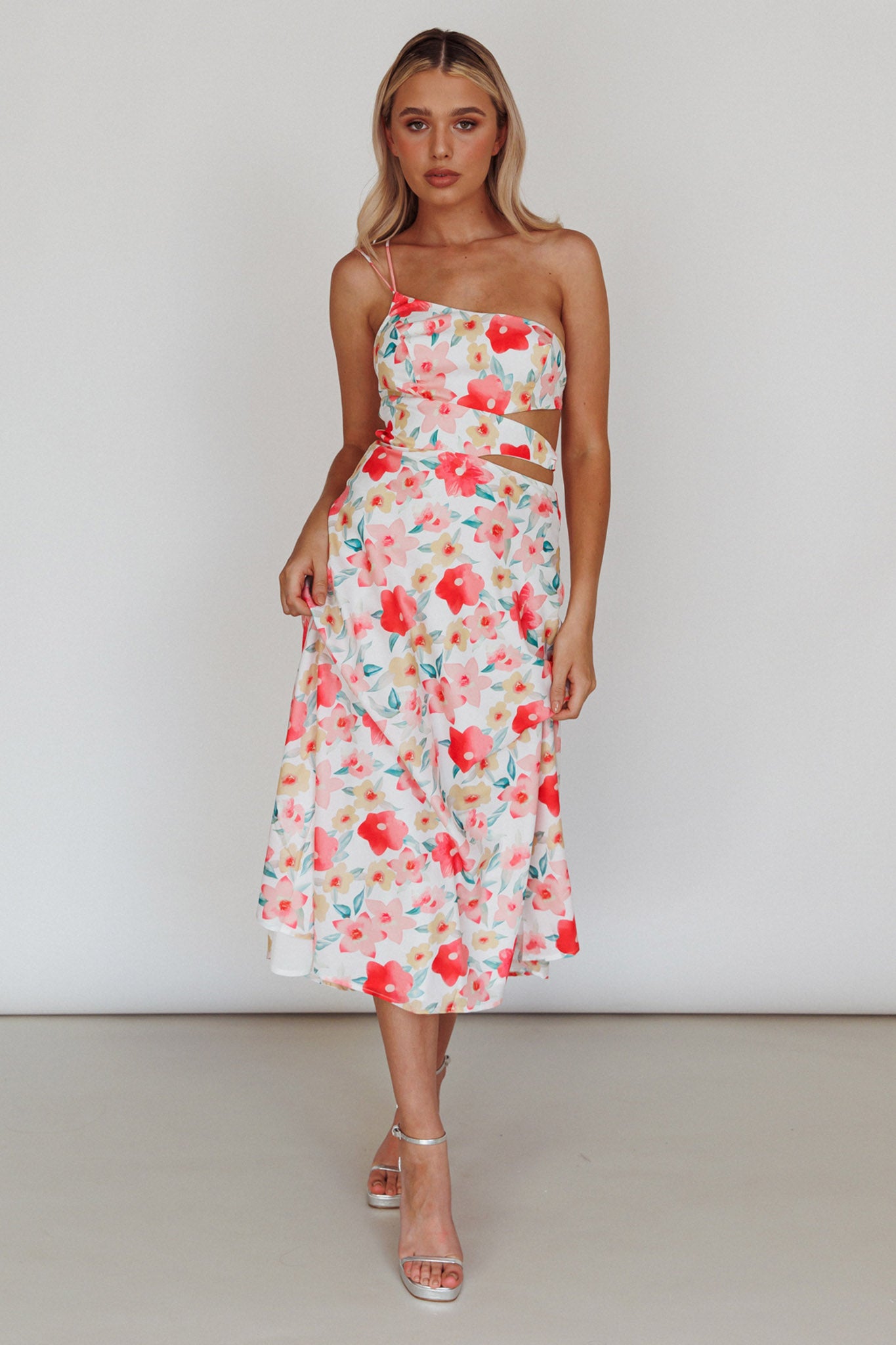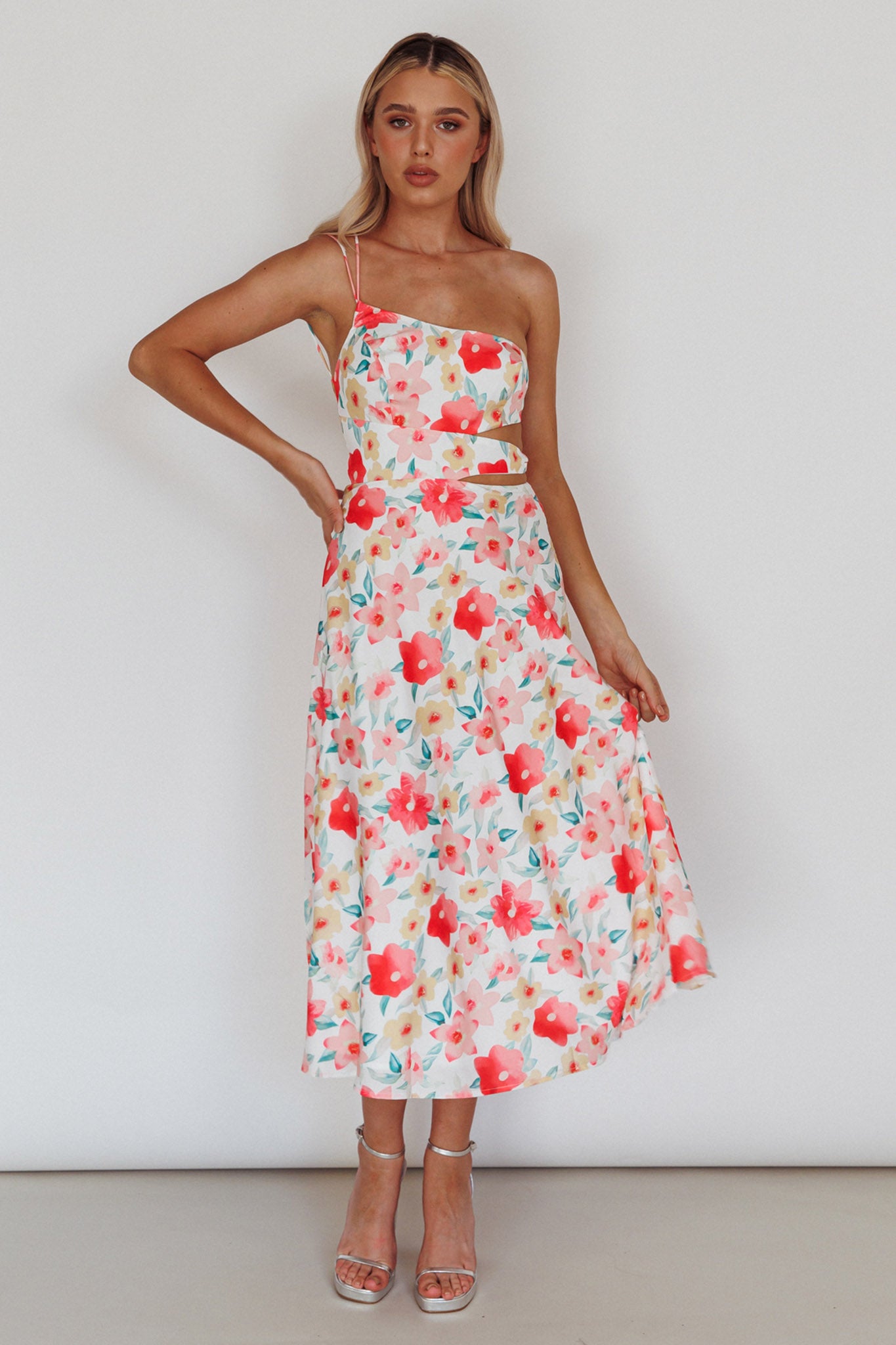 Halia One-Shoulder A-Line Midi Dress Floral Pink