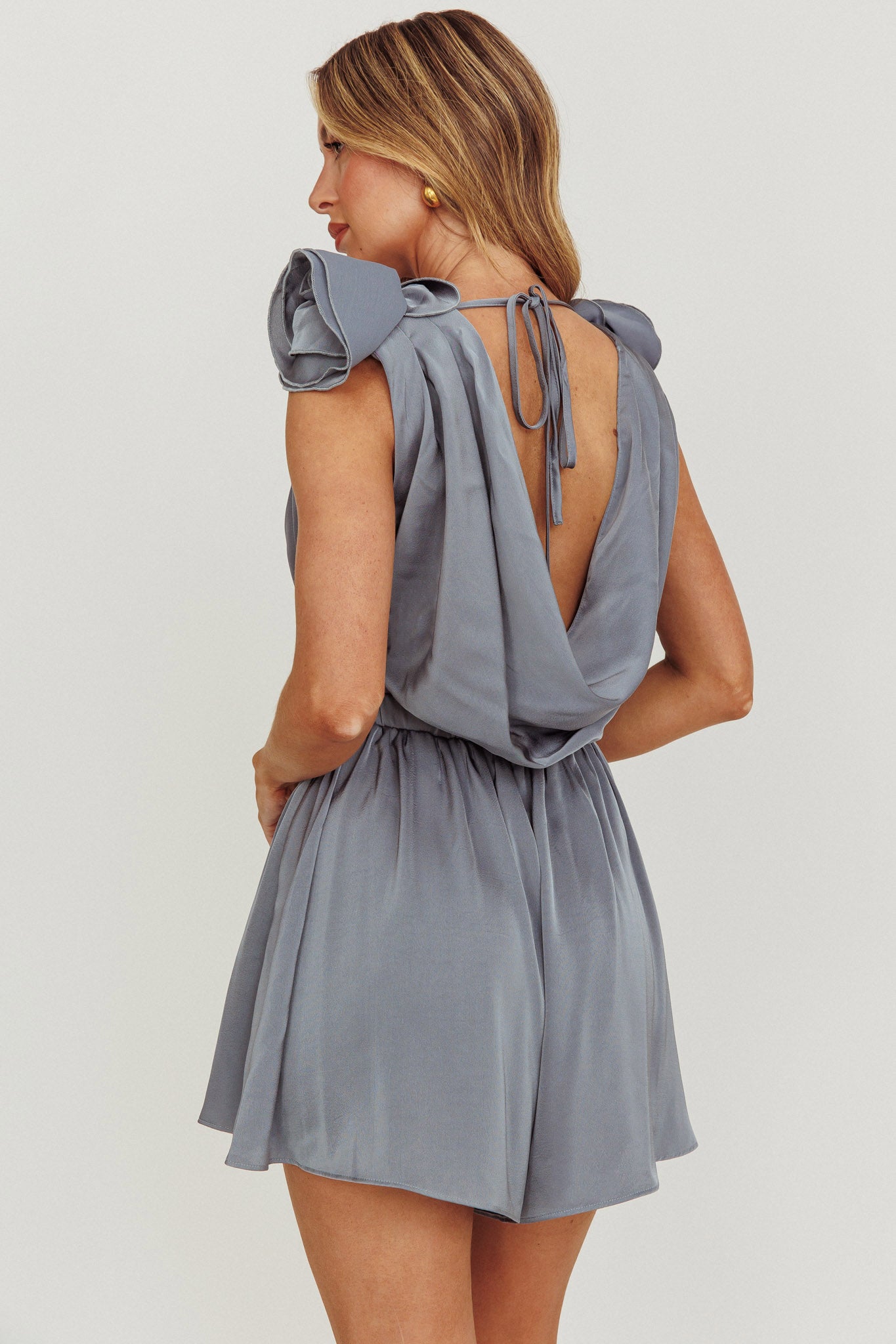 Perfect your party ensemble with our Hallie romper. Designed for the fashion forward, this romper features a draped cowl neck and back as well as timeless shoulder rosettes. It's the go-to fit for when you want to be comfortable yet chic.