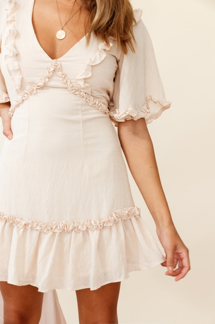 A little bit sweet, a little bit sassy, that's our Halo dress. Featuring a V-neckline, frill detail in the bust, fluttery half-sleeves and wide ruffle hem, it's perfect for a flirty first date with that guy you've been Insta-stalking for the past month. Team it with ankle boots and a tote for a cute trans-seasonal look we are loving.
