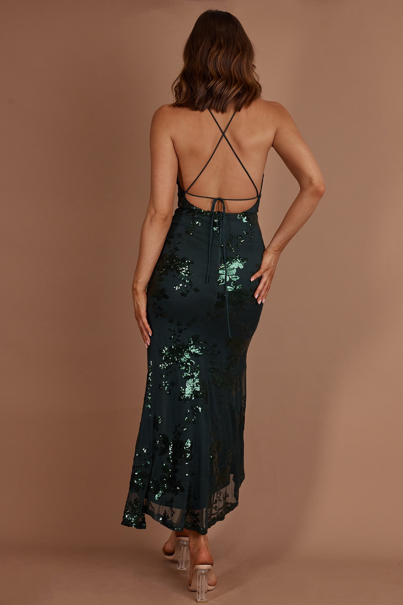 Haylan Sequin Backless Midi Dress Forest Green