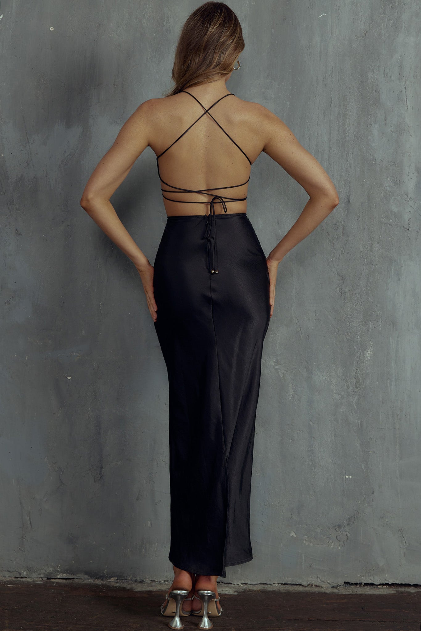 Heaven On Earth Lace-Up Back Maxi Dress Black