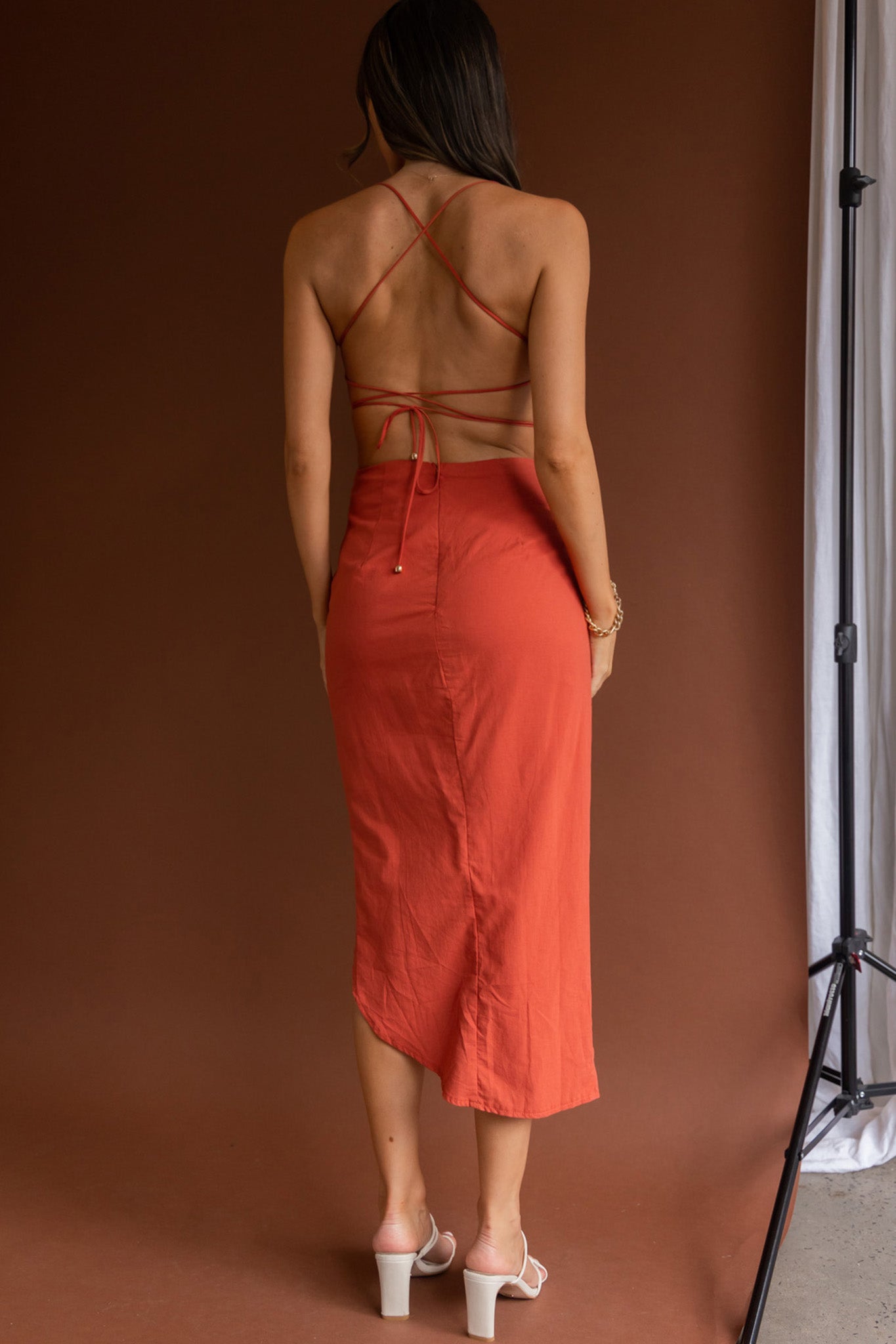 You'll look like an angel in our Heaven On Earth midi dress. Perfect for special events and celebrations, we are loving its strappy back and adjustable, ruched split in the front. Team it with perspex heels and a clutch for a head-turning look.