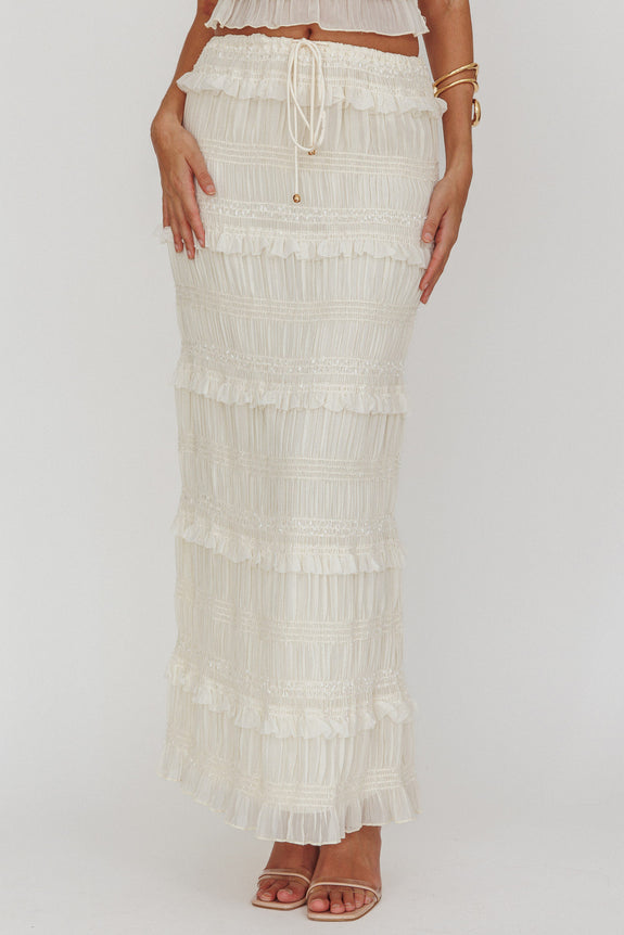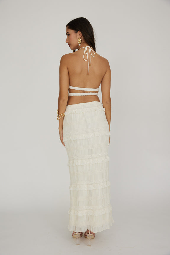 Embrace your inner fashionista with our Helios maxi skirt. Designed to make a statement wherever you go, this skirt redefines sophistication with its shirred texture and sequined fabric. Perfect for both day and evening wear, this versatile skirt effortlessly transitions from casual brunch dates to glamorous nights out. Pair it with the matching top for an effortlessly completed look.