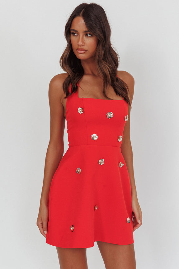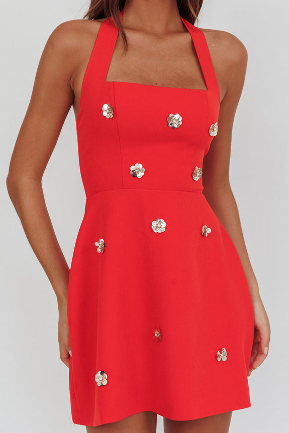 Hendrix Halterneck A-Line Mini Dress Sequin Flower Red