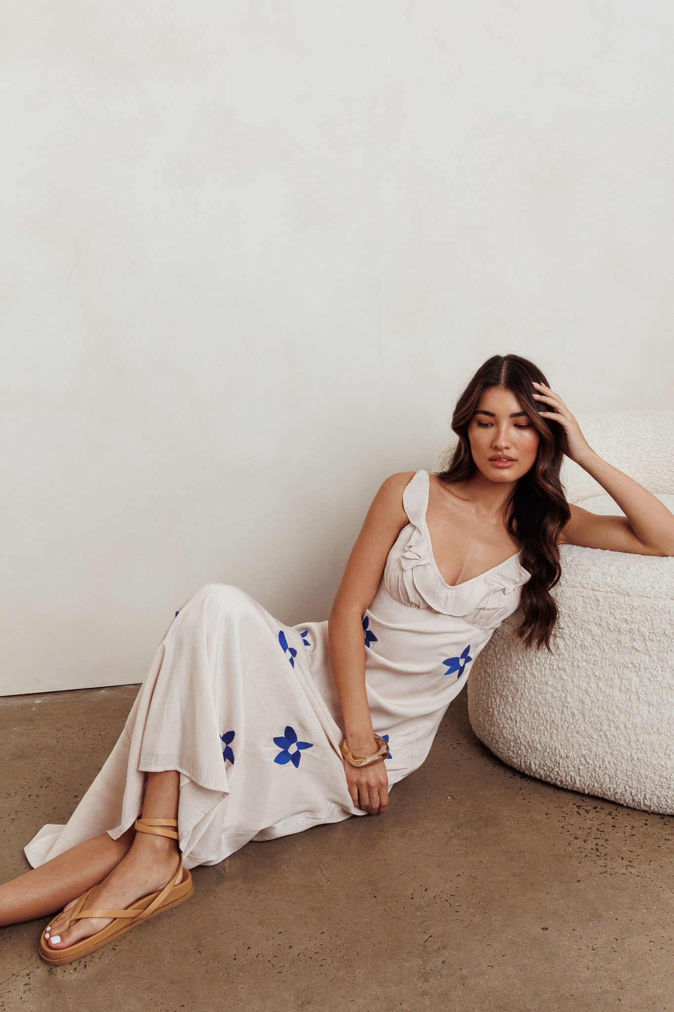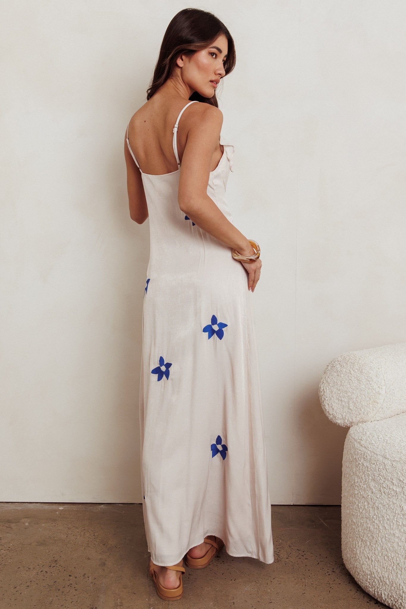 Hibiscus Ruffle A-line Maxi Dress Bone