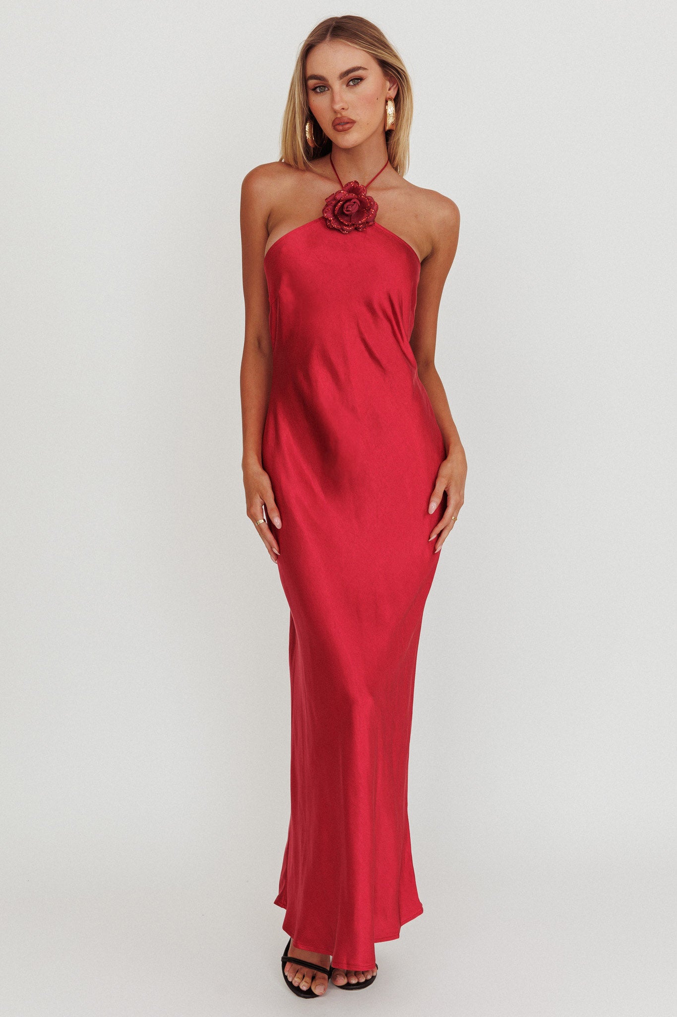 Turn up the heat in our gorgeous High Roller maxi dress. Featuring a halter neckline and detachable flower decoration. It's perfect for a wedding or special celebration! Team it with strappy heels and a satin clutch for a look that will have you flooded with compliments.