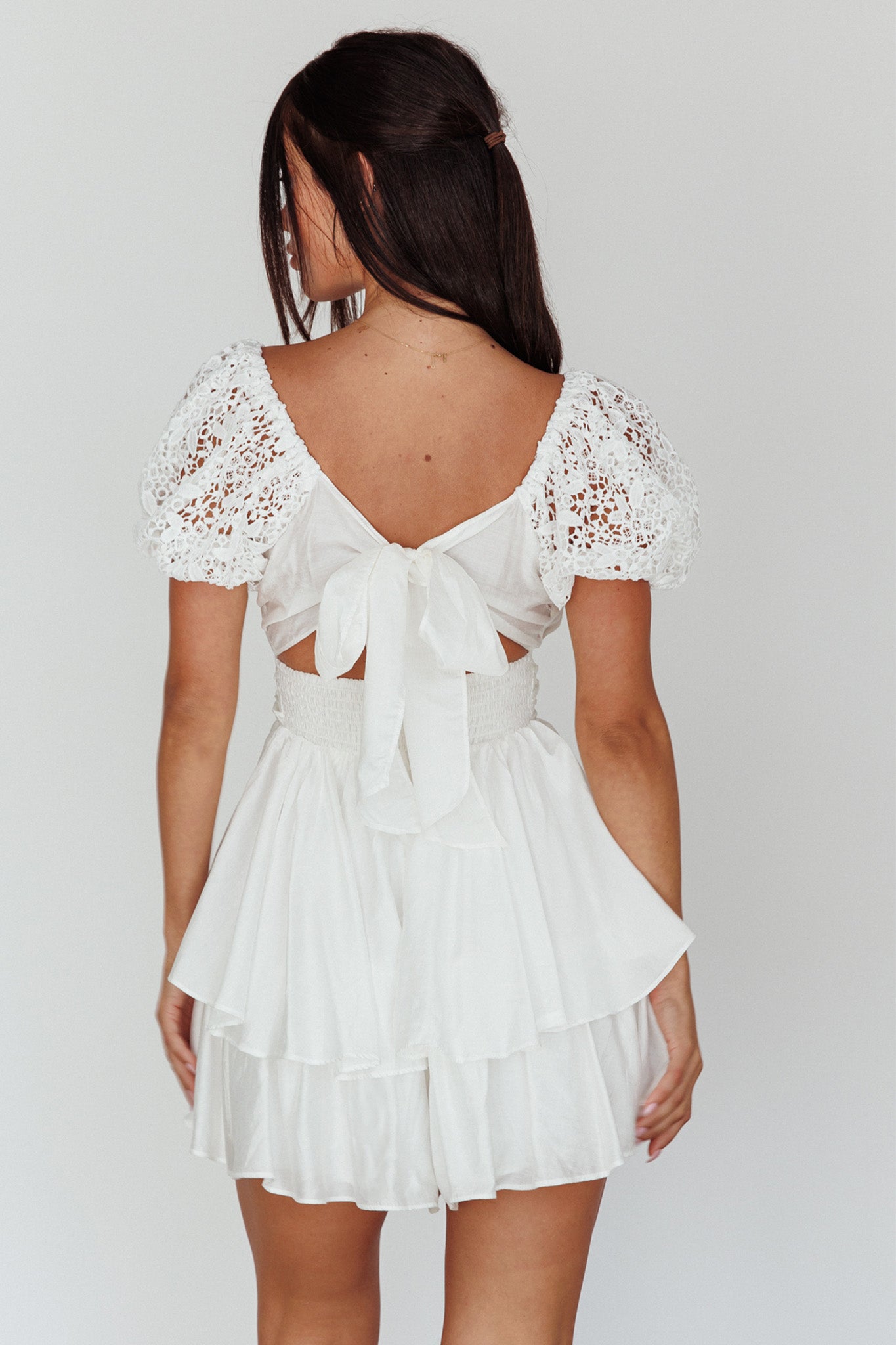 Make an entrance in our super cute Hold My Halo romper. We are in love with its lace sleeves and layered hem. Perfect for a bridal shower or graduation. Team it with white heels and a clutch for a look we are loving.