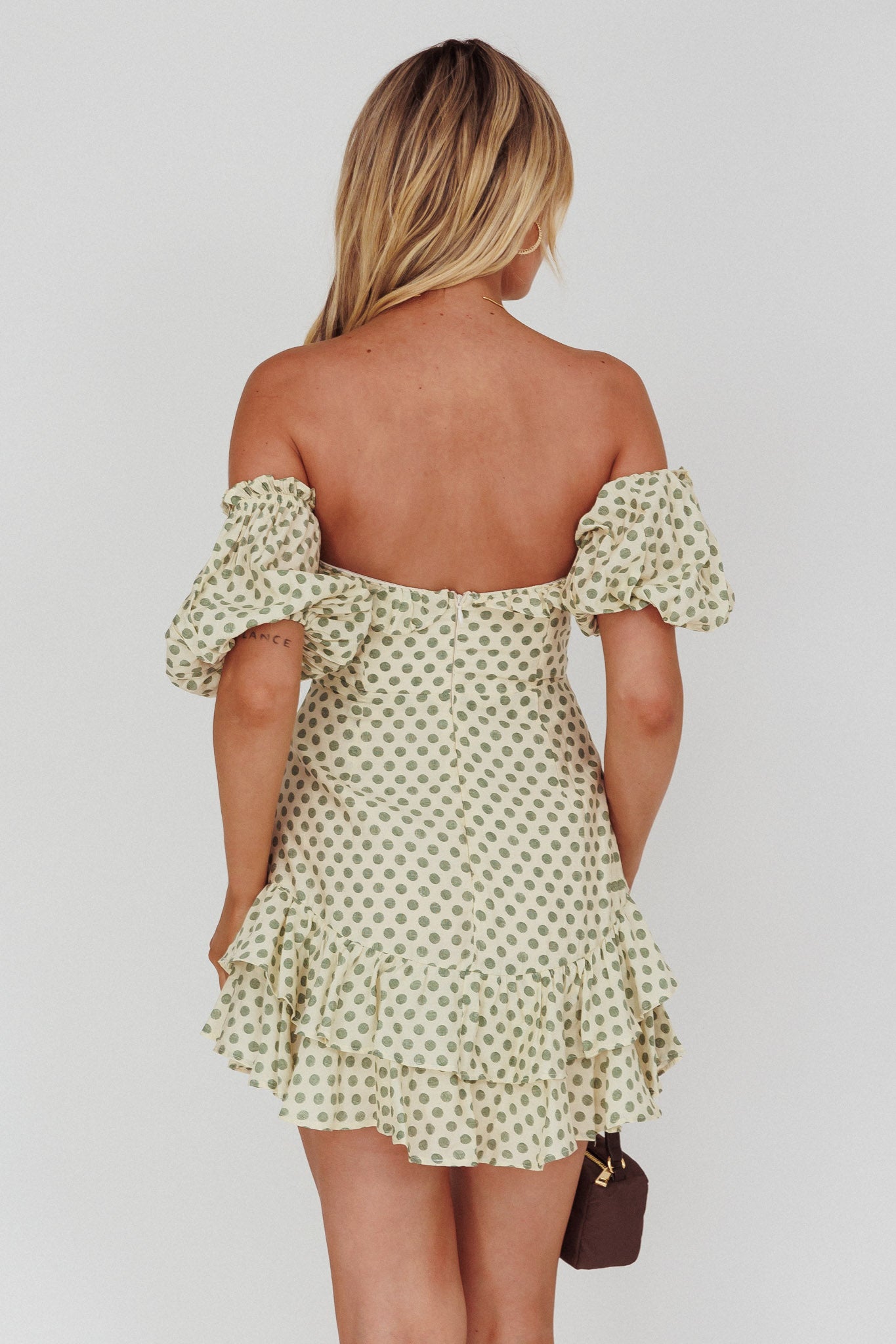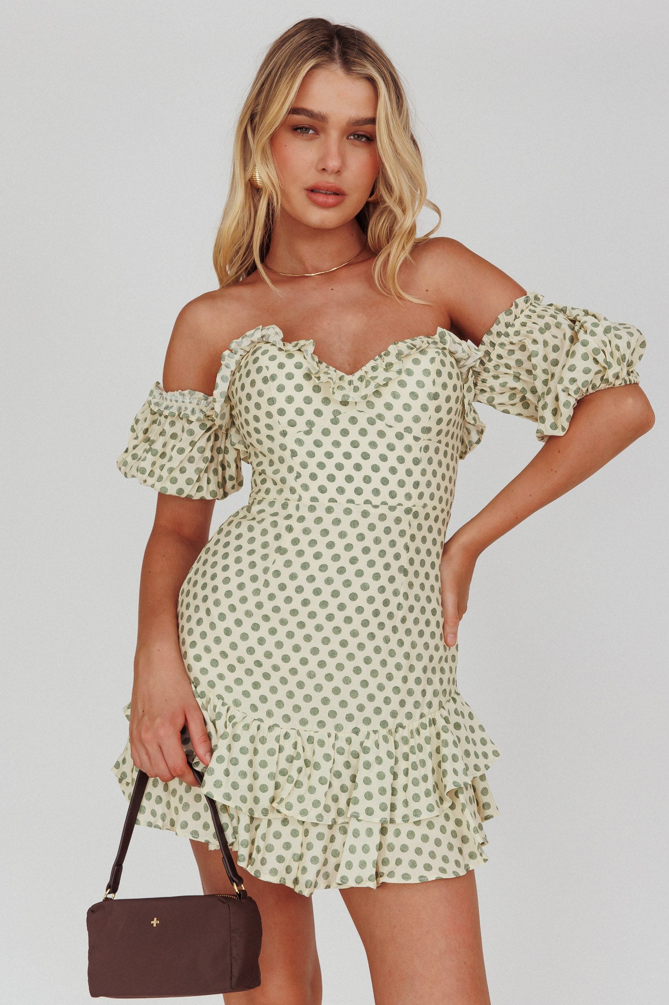 Homecoming Queen Sweetheart Neckline Puff Sleeve Dress Polka Dot Green