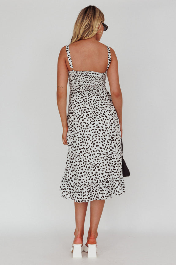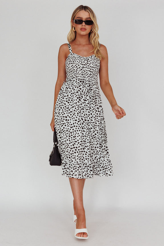 Honey Shirred Frill Midi Dress White/Black
