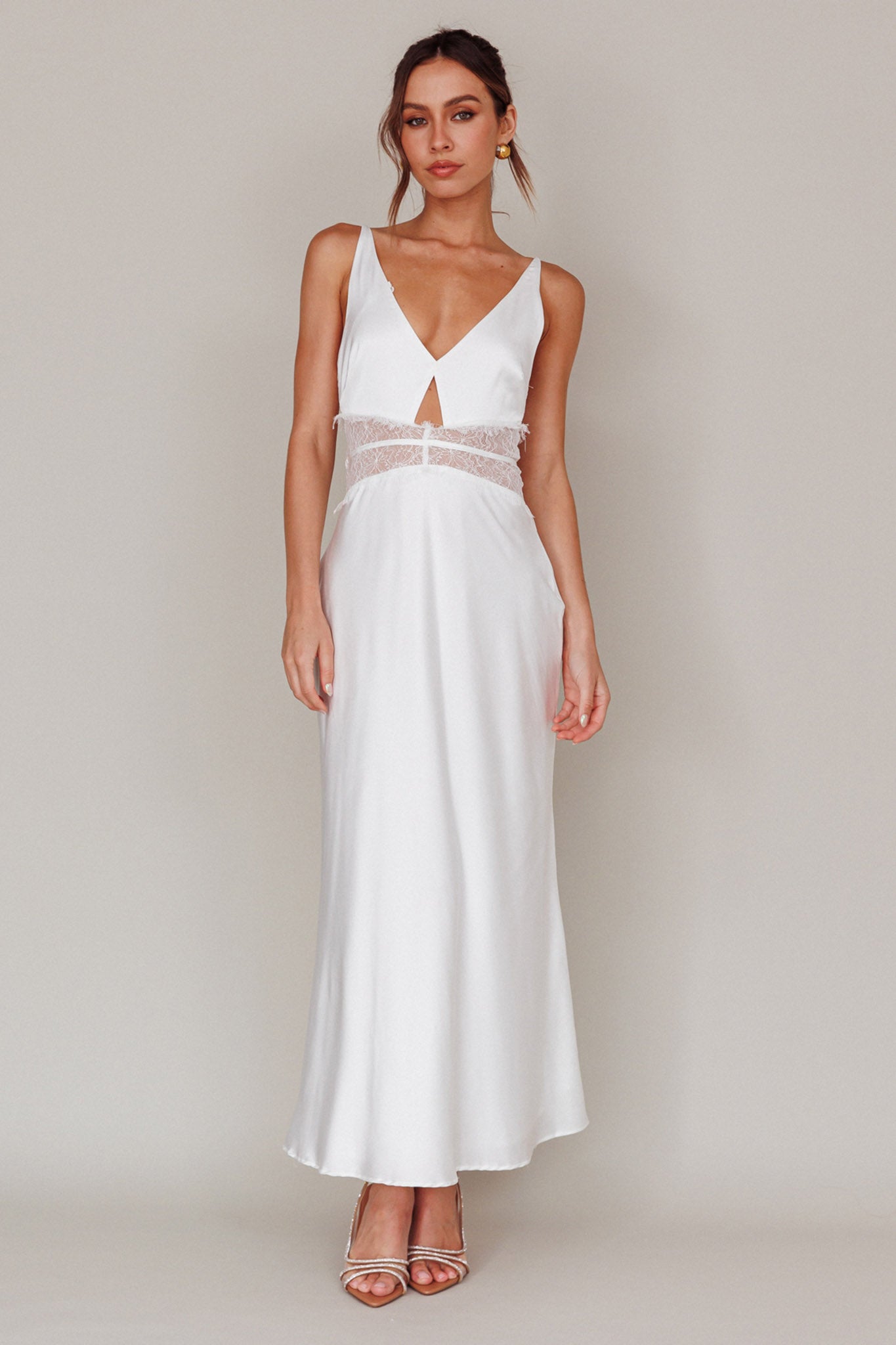 You'll go straight to the best-dressed list in our pretty Honeybee maxi dress. Perfect for a wedding or special occasion. We are in love with its lace insert detail and delicate tie in the back. Team it with white heels and a clutch for an unforgettable look.
