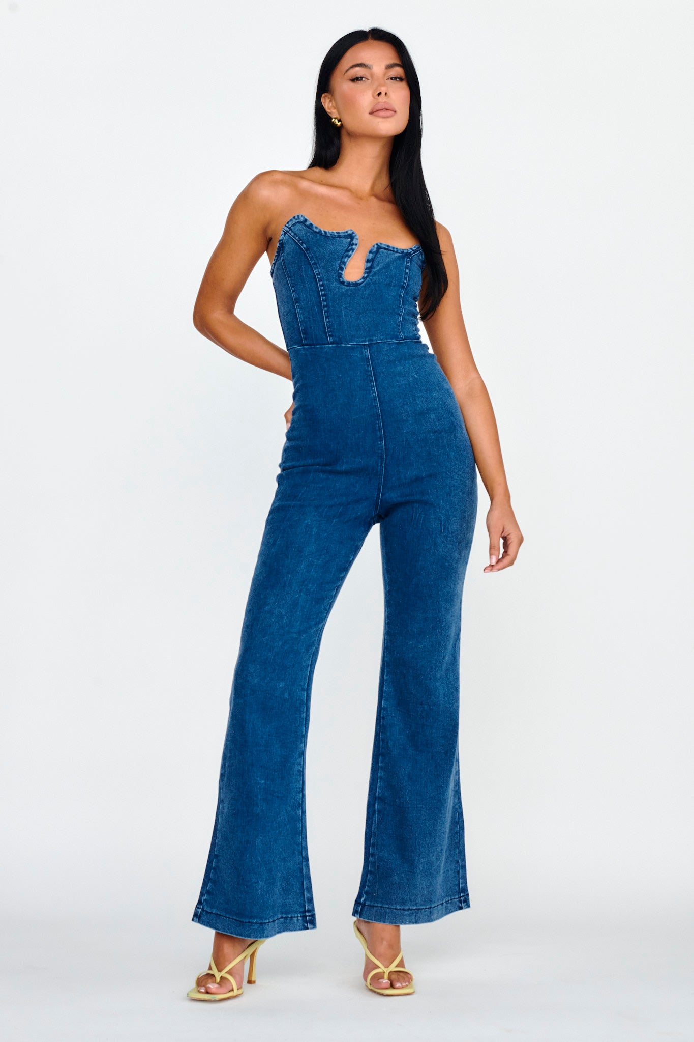 Horizon Strapless Wavy Neckline Jumpsuit Denim