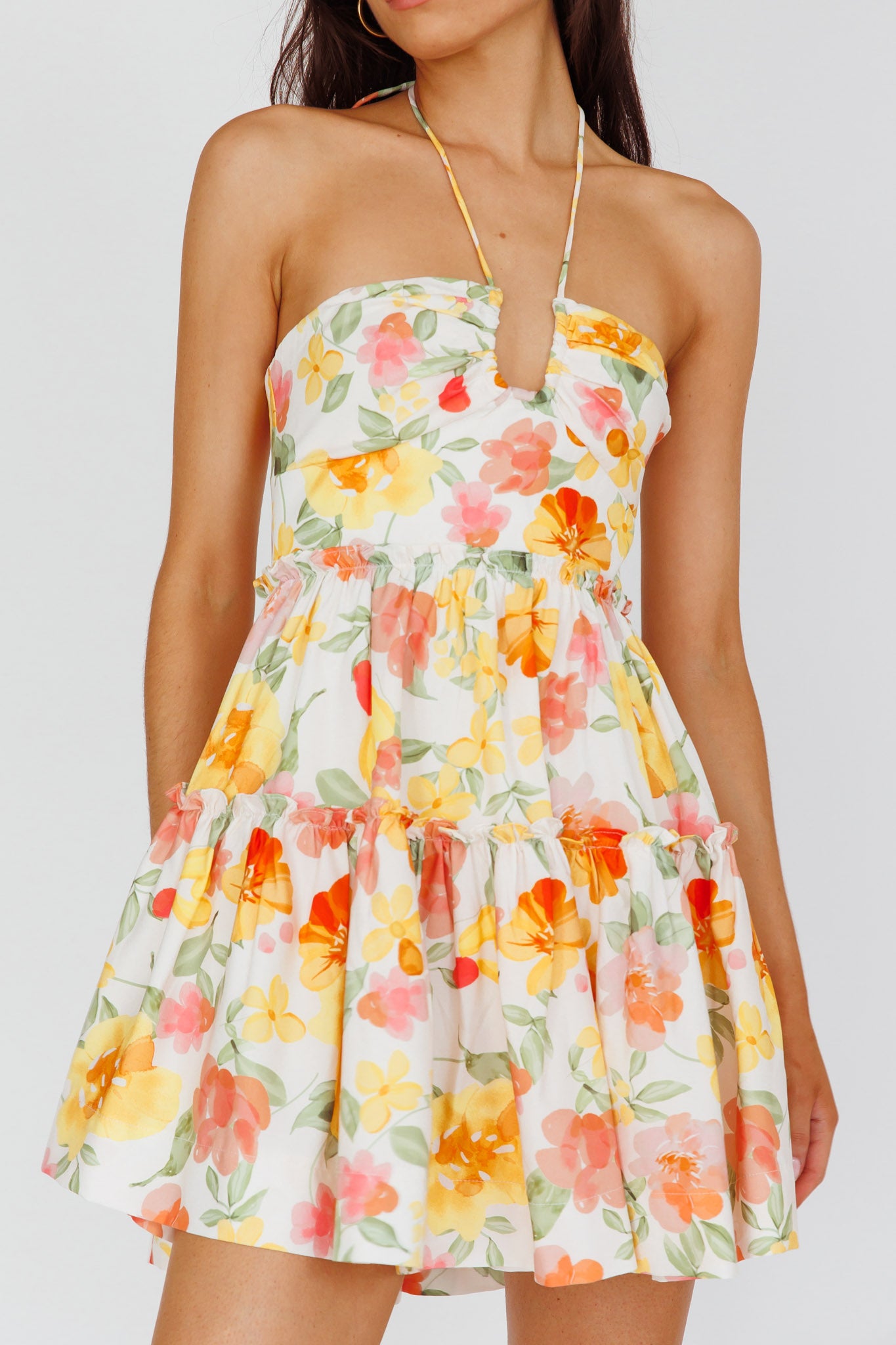 - Floral yellow mini dress