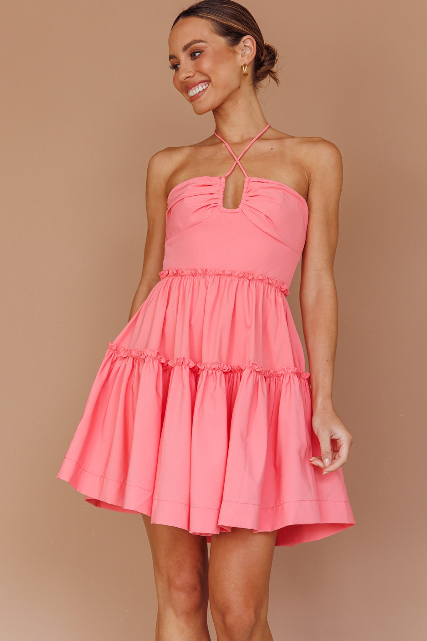 Hey there, doll! You are serving looks in our adorable Horizons mini dress. Featuring a halterneck and frill trim. It's perfect for a mimosa brunch with your besties! Team it with white, tie-up heels and a tote for a look that will turn heads.