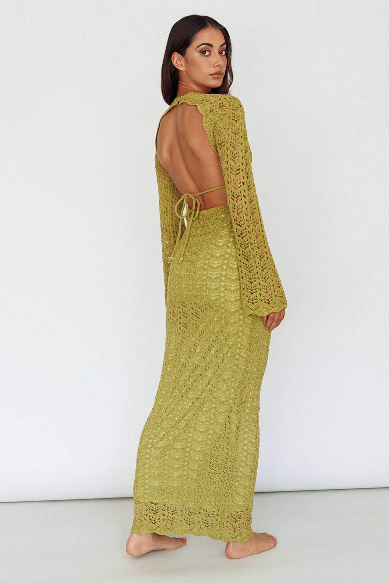 Hyland Open Back Crochet Maxi Dress Olive