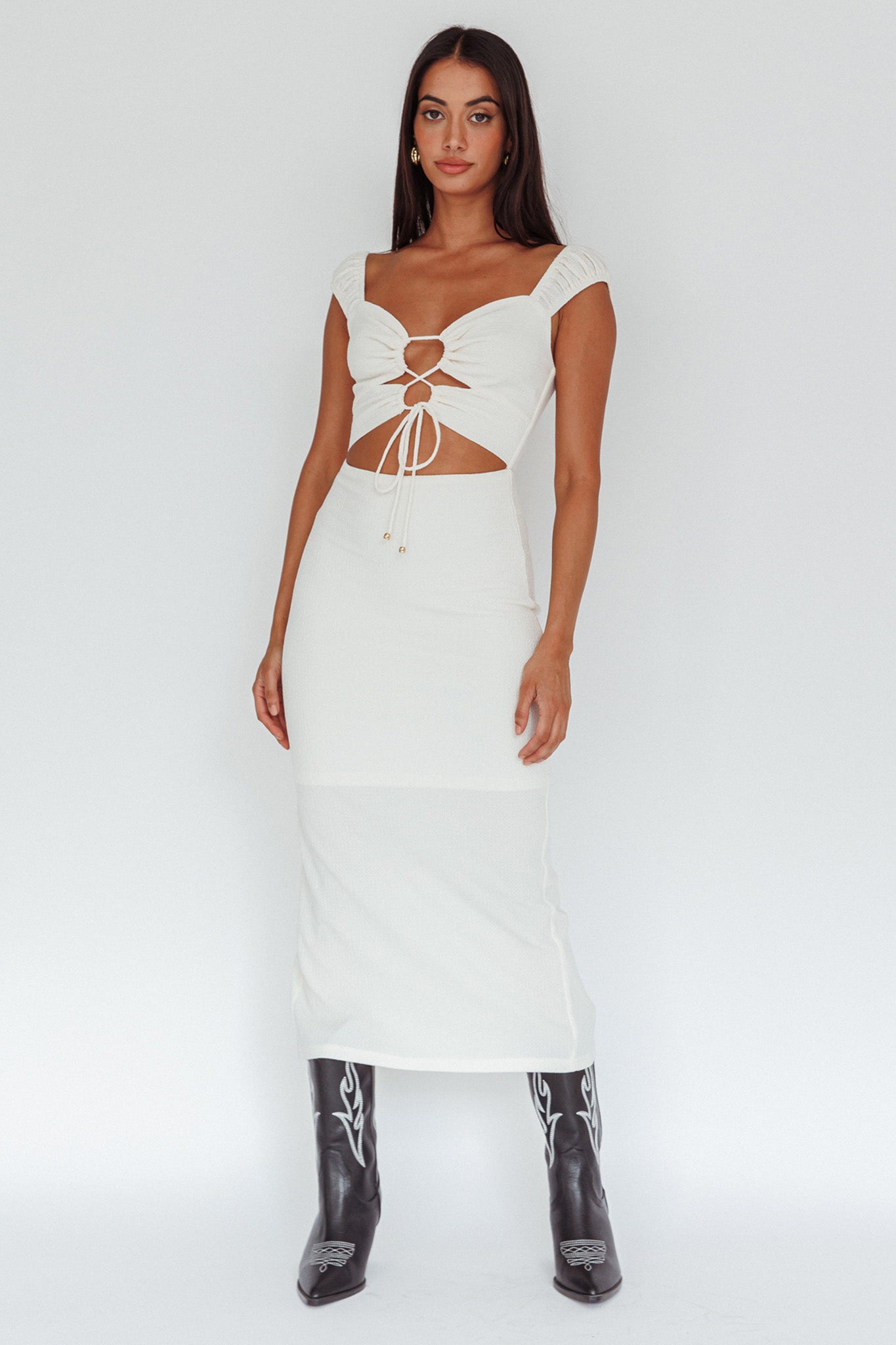 Iconic Cut-Out Bodice Midi Dress Cream