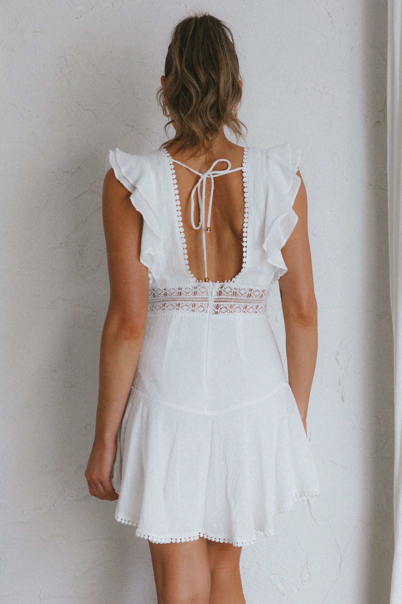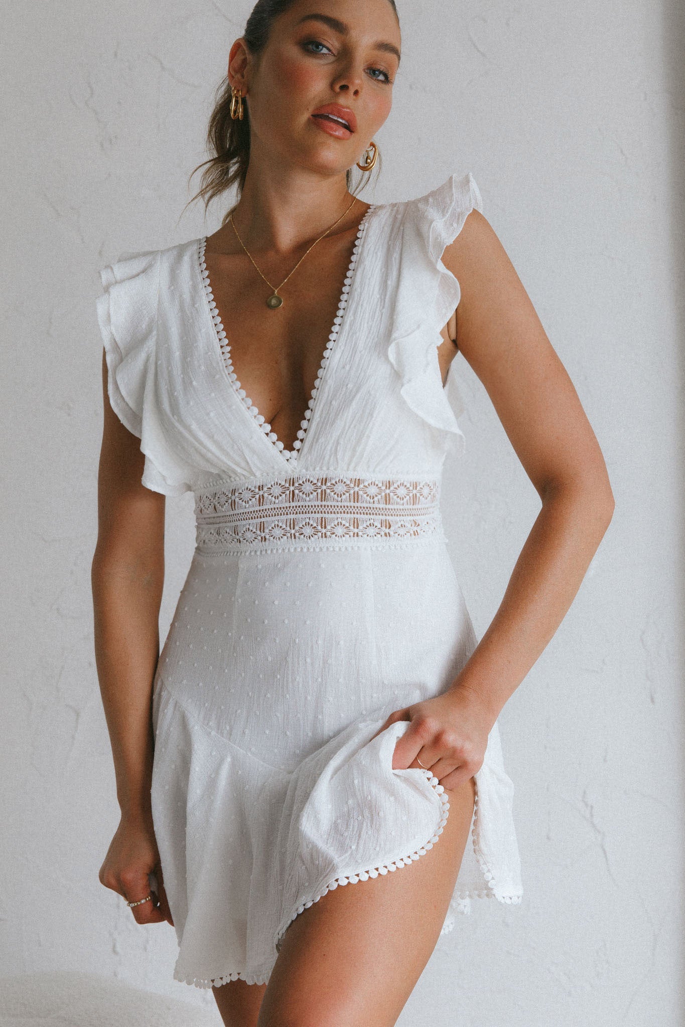 Idyllwild Ruffle Shoulder Mini Dress Off White