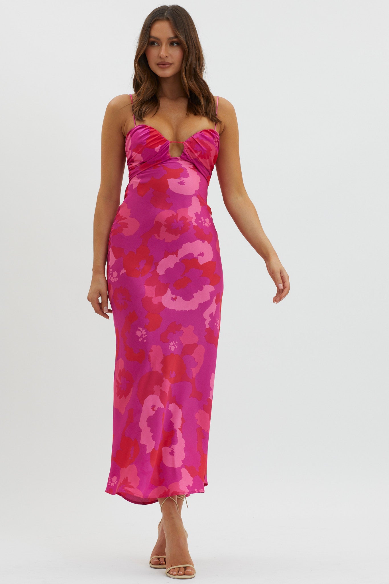 In A Daze Gathered Bust Midi Dress Pink