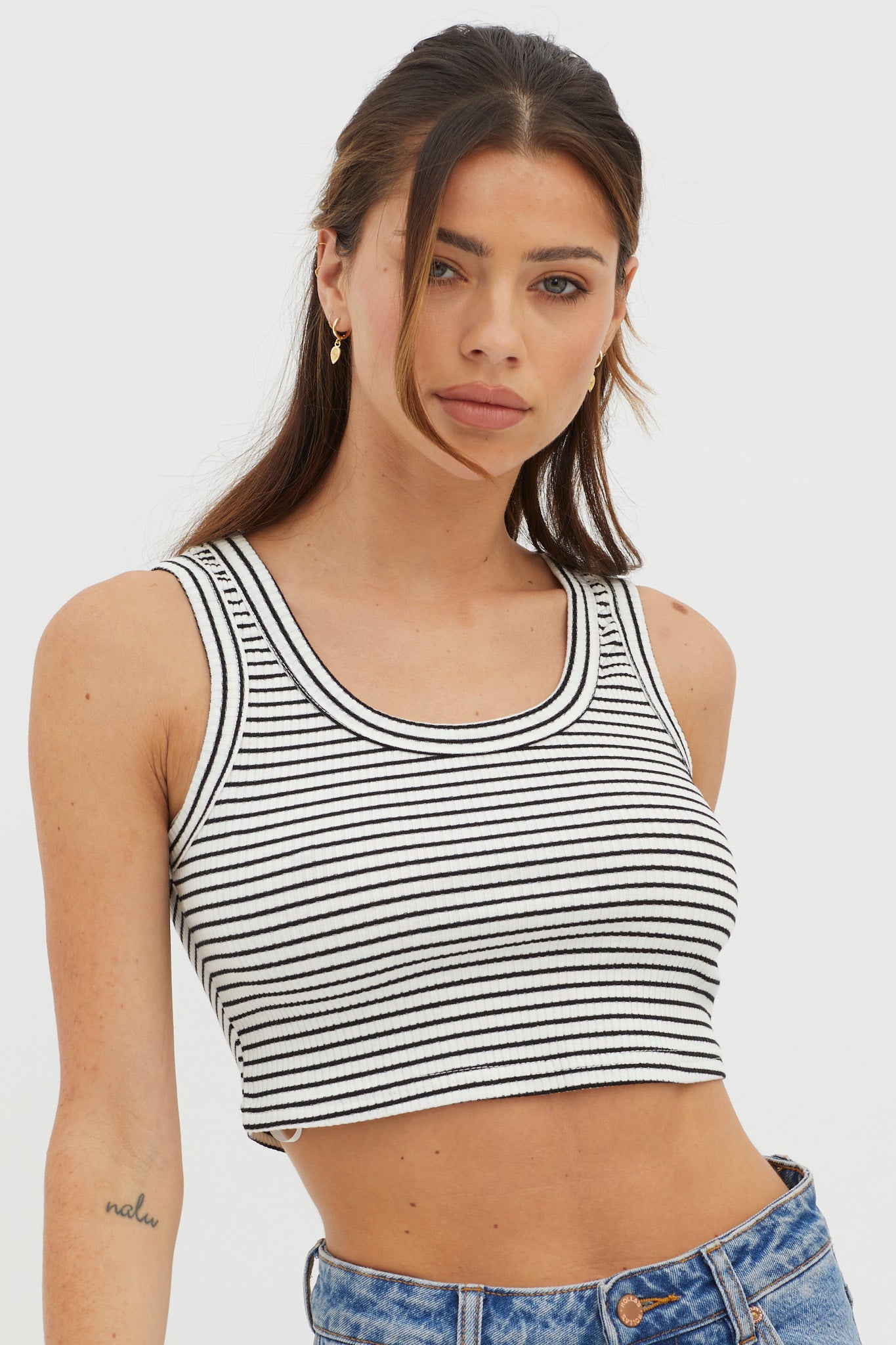 Get back to basics in our In Sync crop top. It's a must-have closet staple that's super versatile. Team it with wide-leg jeans and sandals for coffee dates with your BFFs or dress it up with a satin midi skirt and kitten heels for a look we are loving.