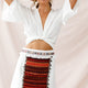 Looking good, girl! Our Inca mini skirt features a beautiful embroidered panel on the front, outlined with a super cute bead and coin trim, frayed hem and back zipper closure. Pair it with a simple black tank top and black single strap heels for a super chic look or wear it with our Rivera top cause they are MFEO and so hot together!