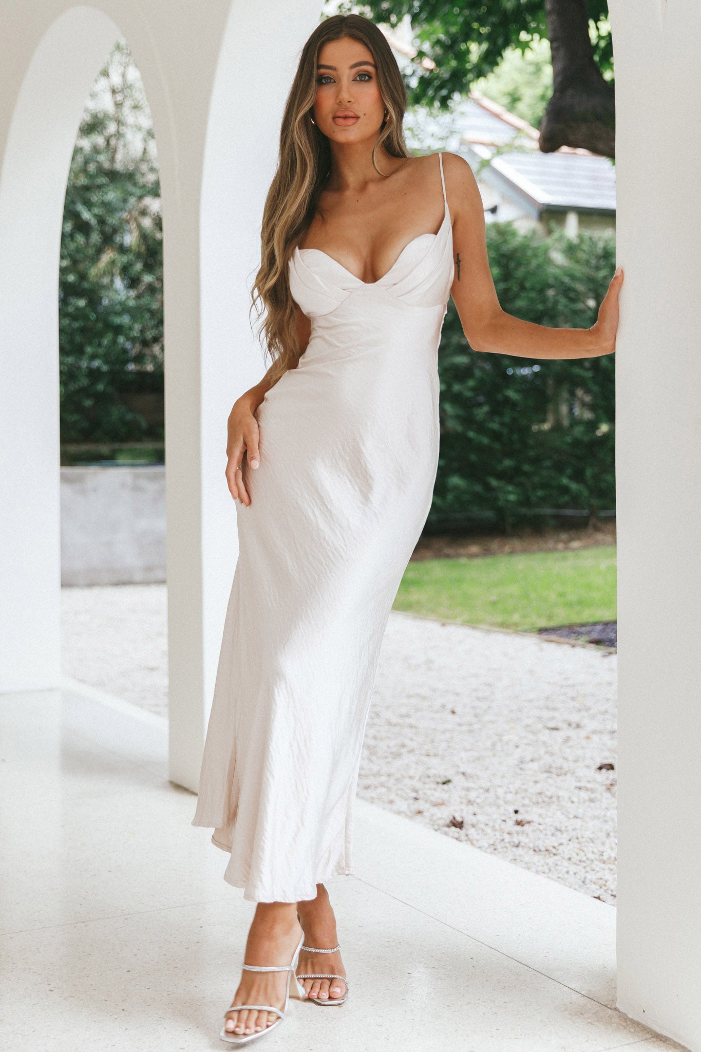 Steal the show in our gorgeous Infinity dress. Featuring a sweetheart neckline and gorgeous pintuck pleat detail. Perfect for a wedding or special occasion. Team it with diamante mules and a clutch for a look that will turn heads.