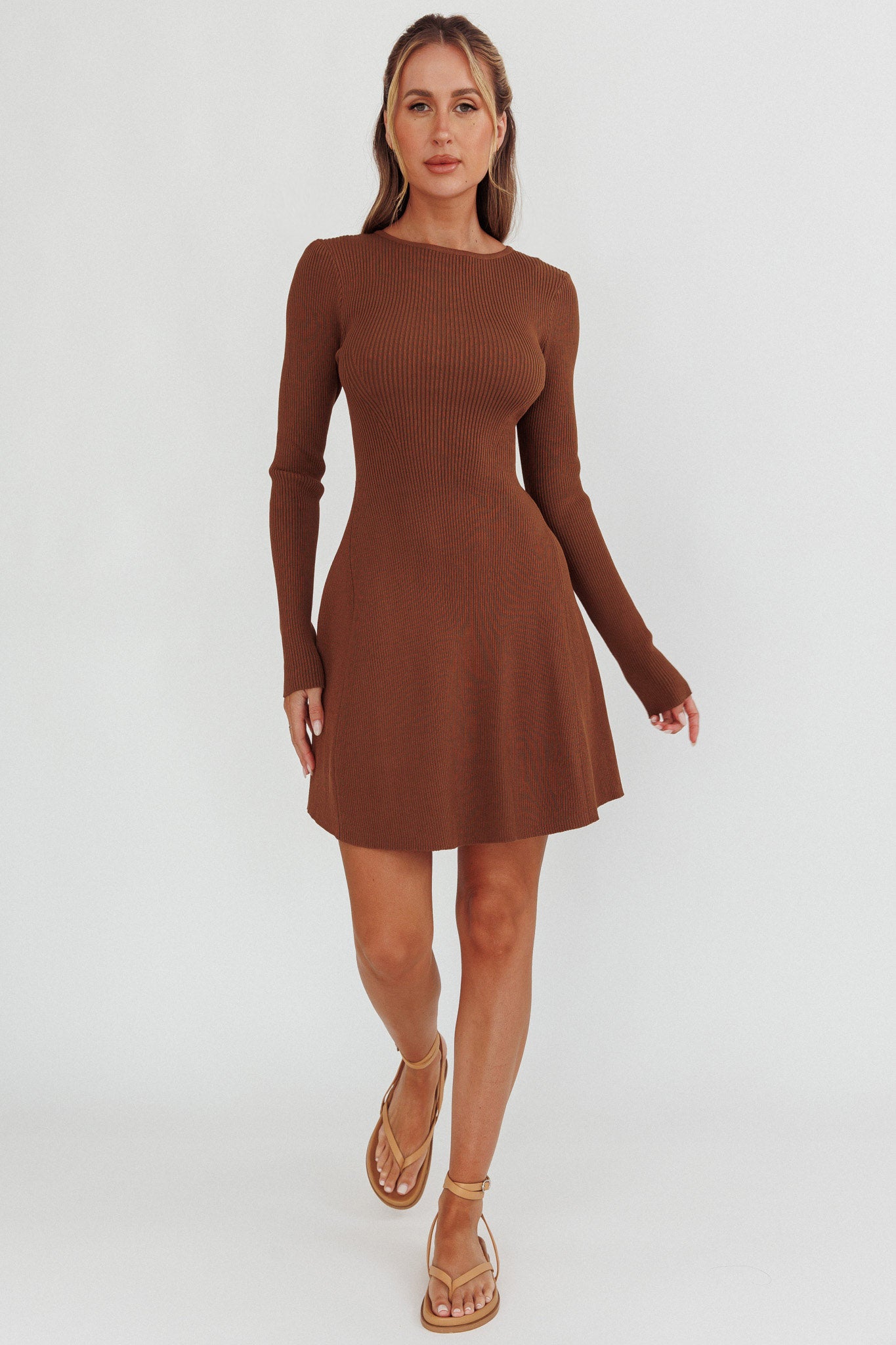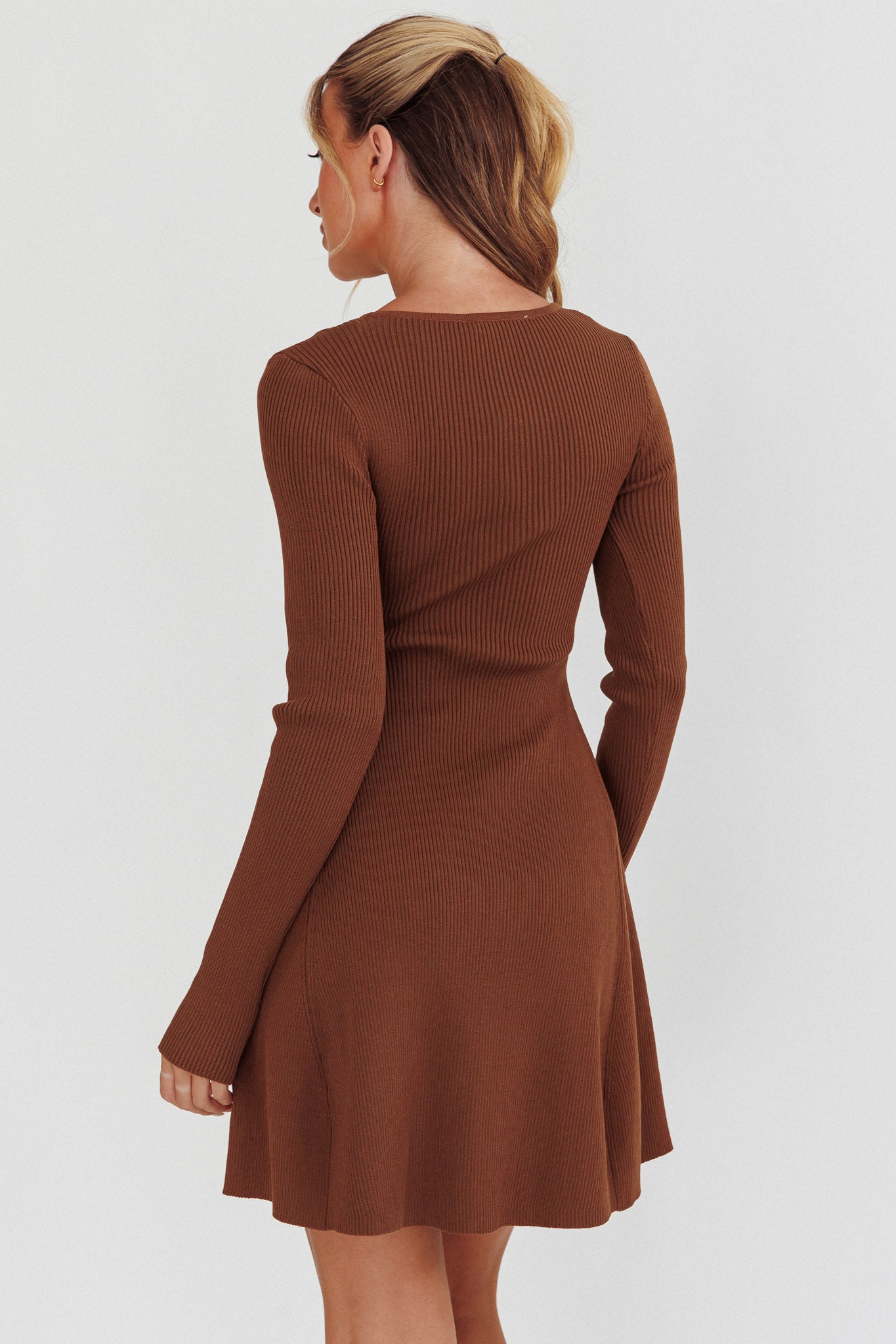 Intuitions Long Sleeve Ribbed Knit Dress Chocolate