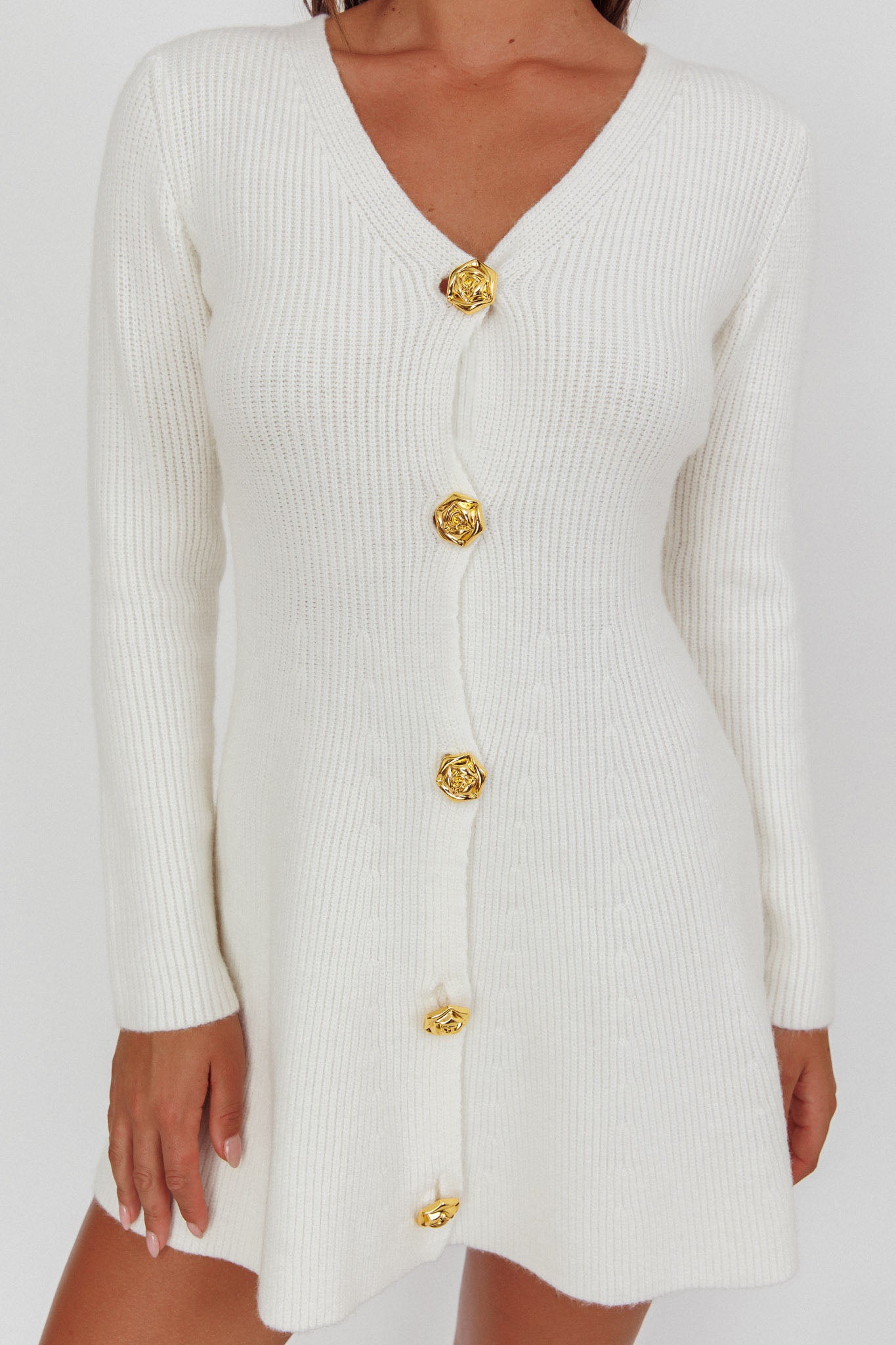 Irma Gold Button Knit Mini Dress White