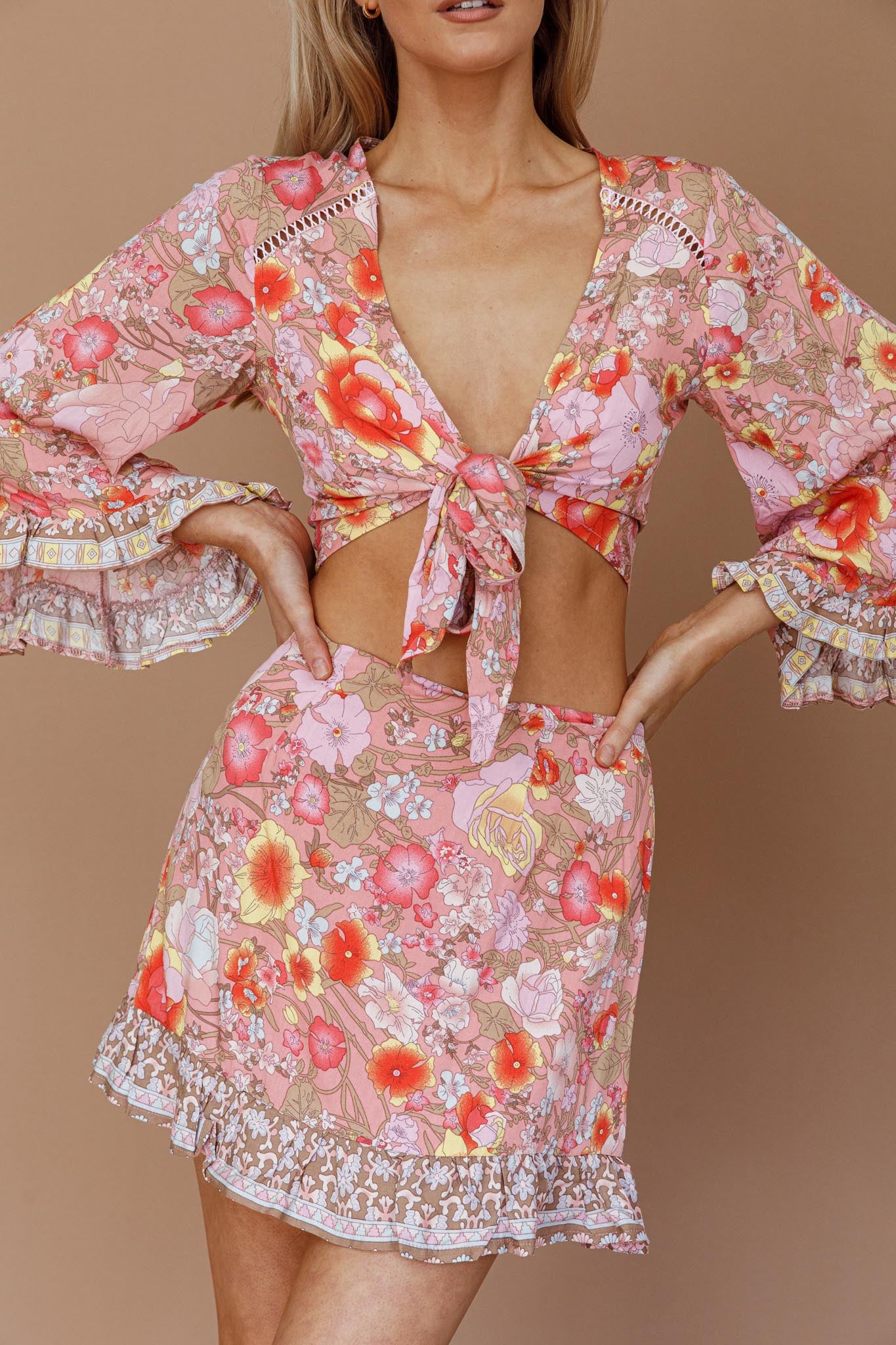 Island Girl Frill Hem Mini Skirt Floral Pink
