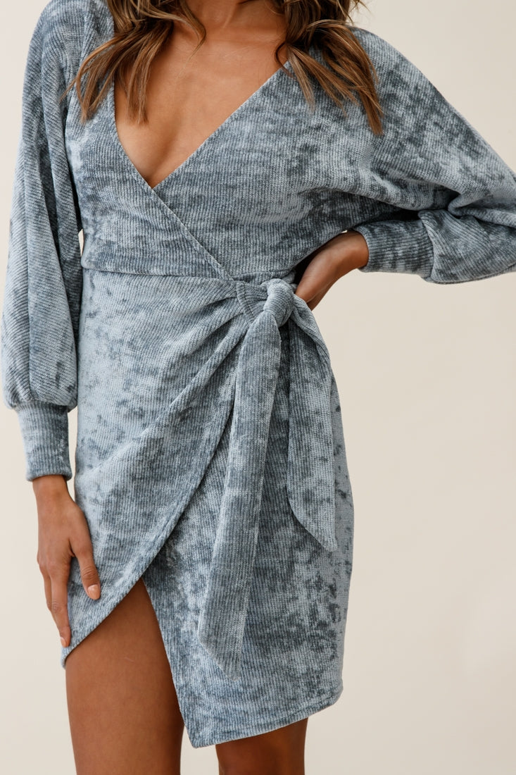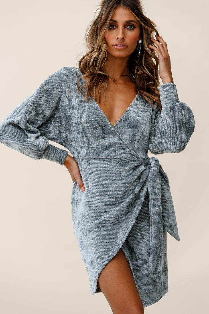 Cozy up in our sexy Isolde wrap dress. Featuring super soft, ribbed velour fabric throughout, long, cuffed sleeves and tying at the side. Perfect for a romantic date night with your beau teamed with suede thigh-high boots.