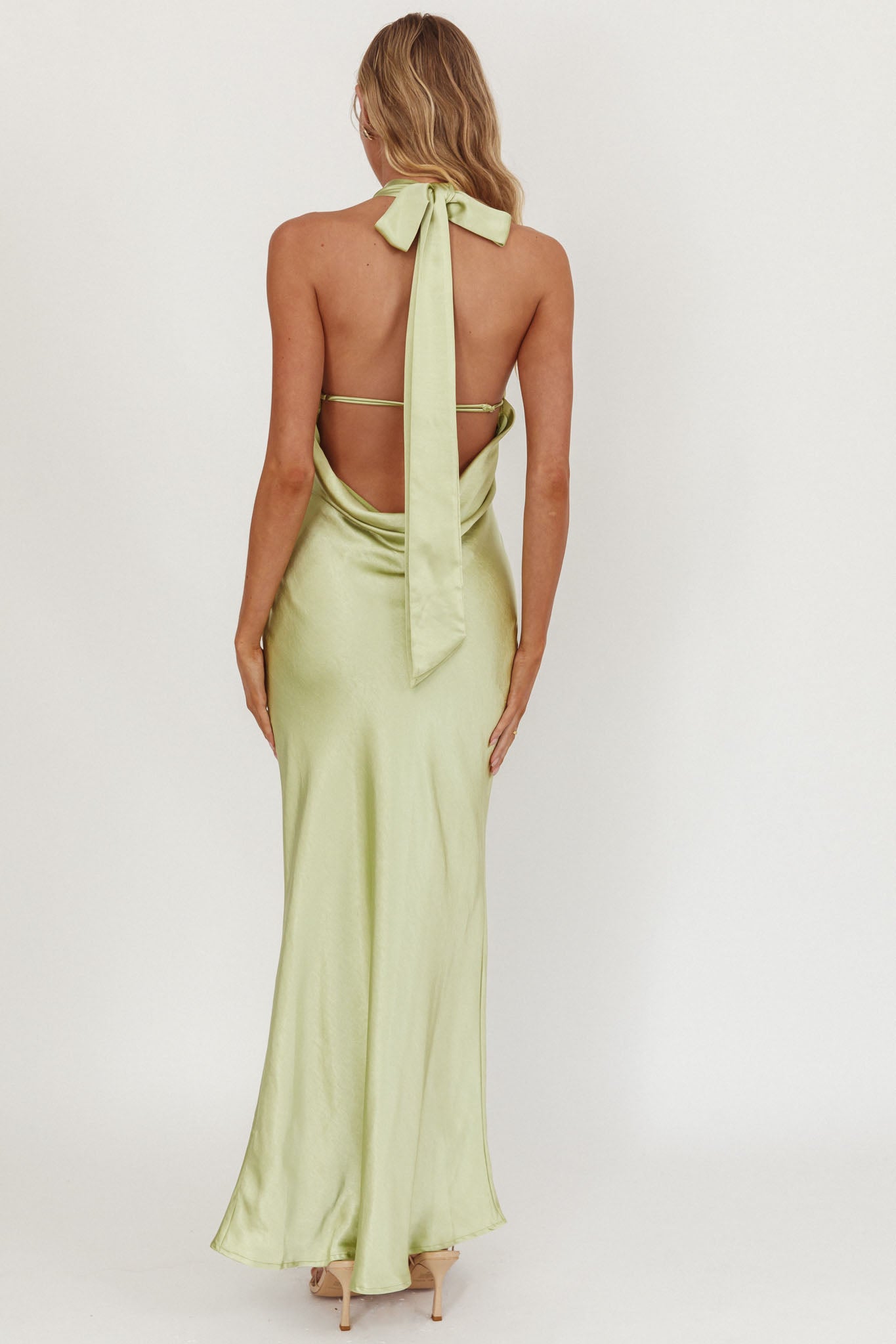 Italia Azure Crossover Halterneck Maxi Dress Pistachio