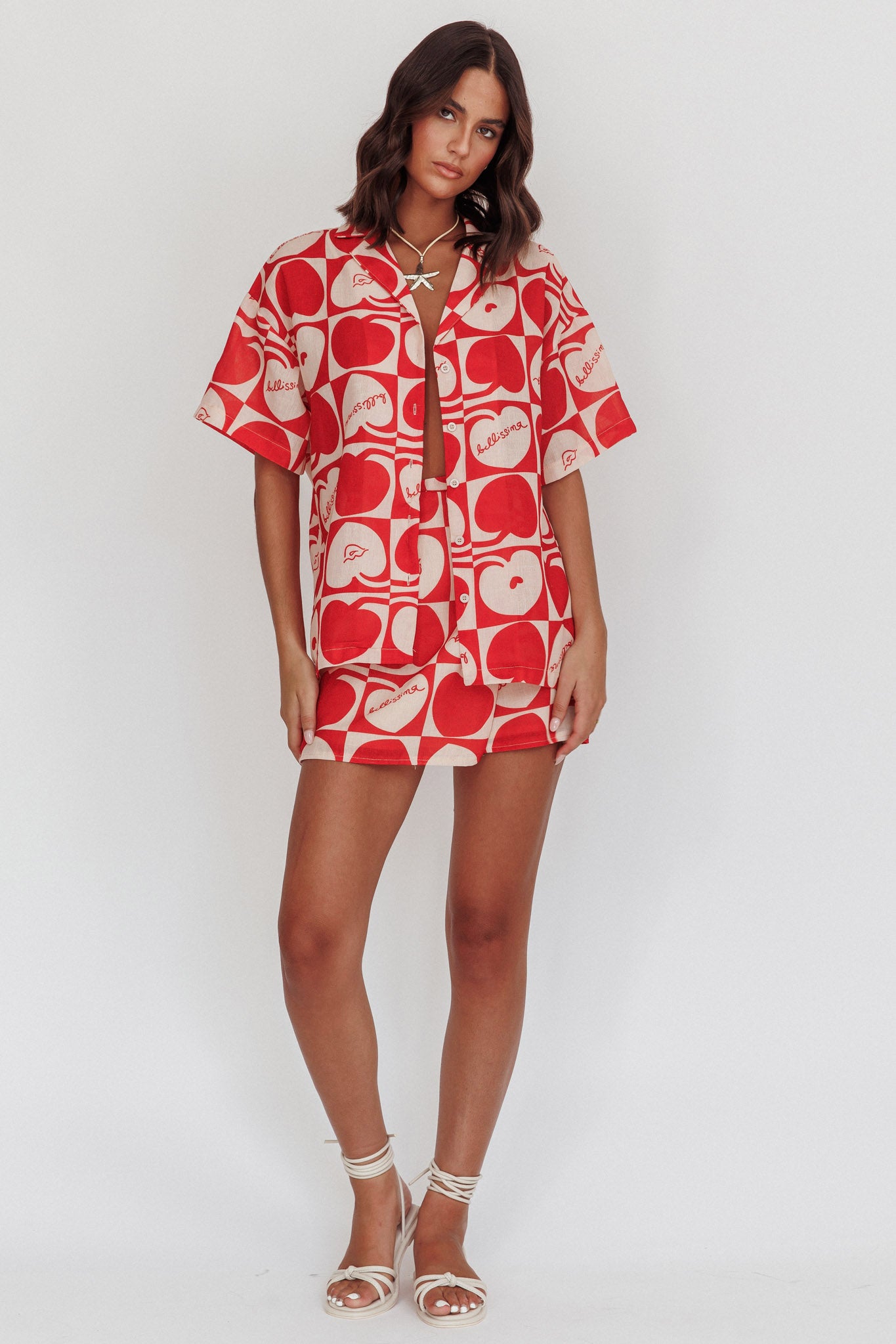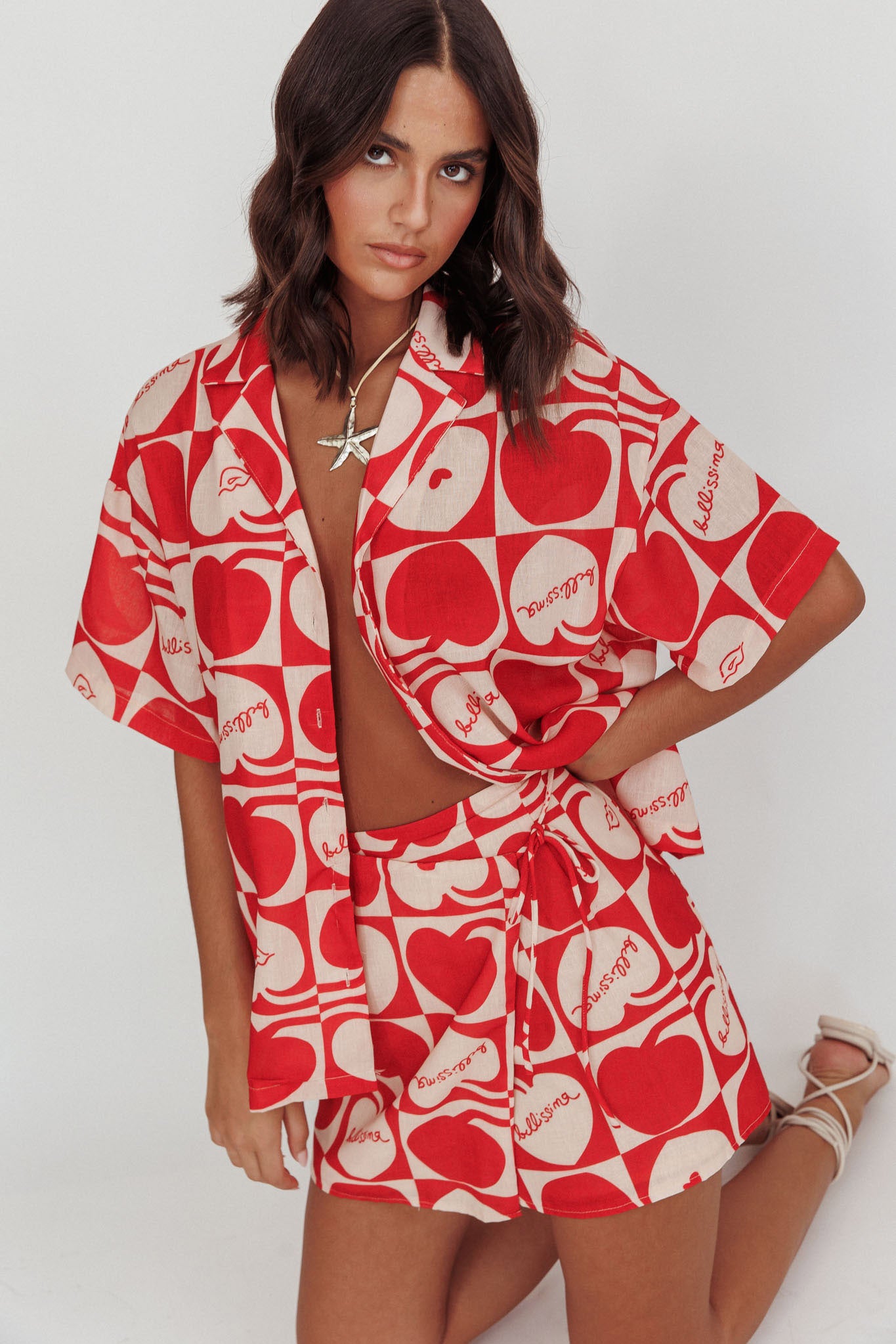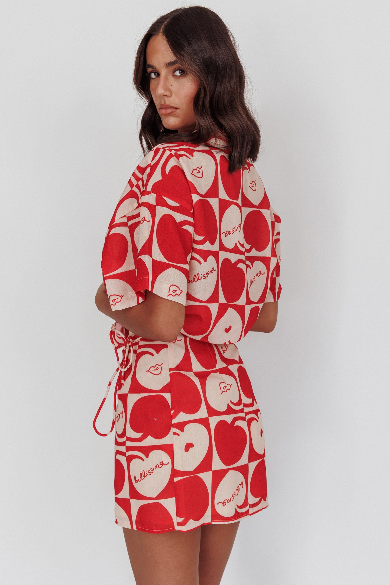 Ithaca Cherry Print Mini Wrap Skirt Red Beige