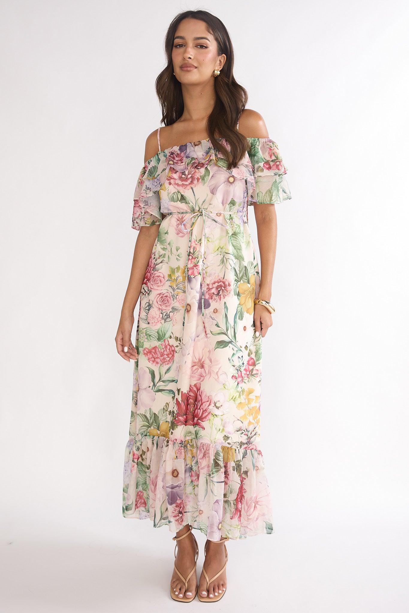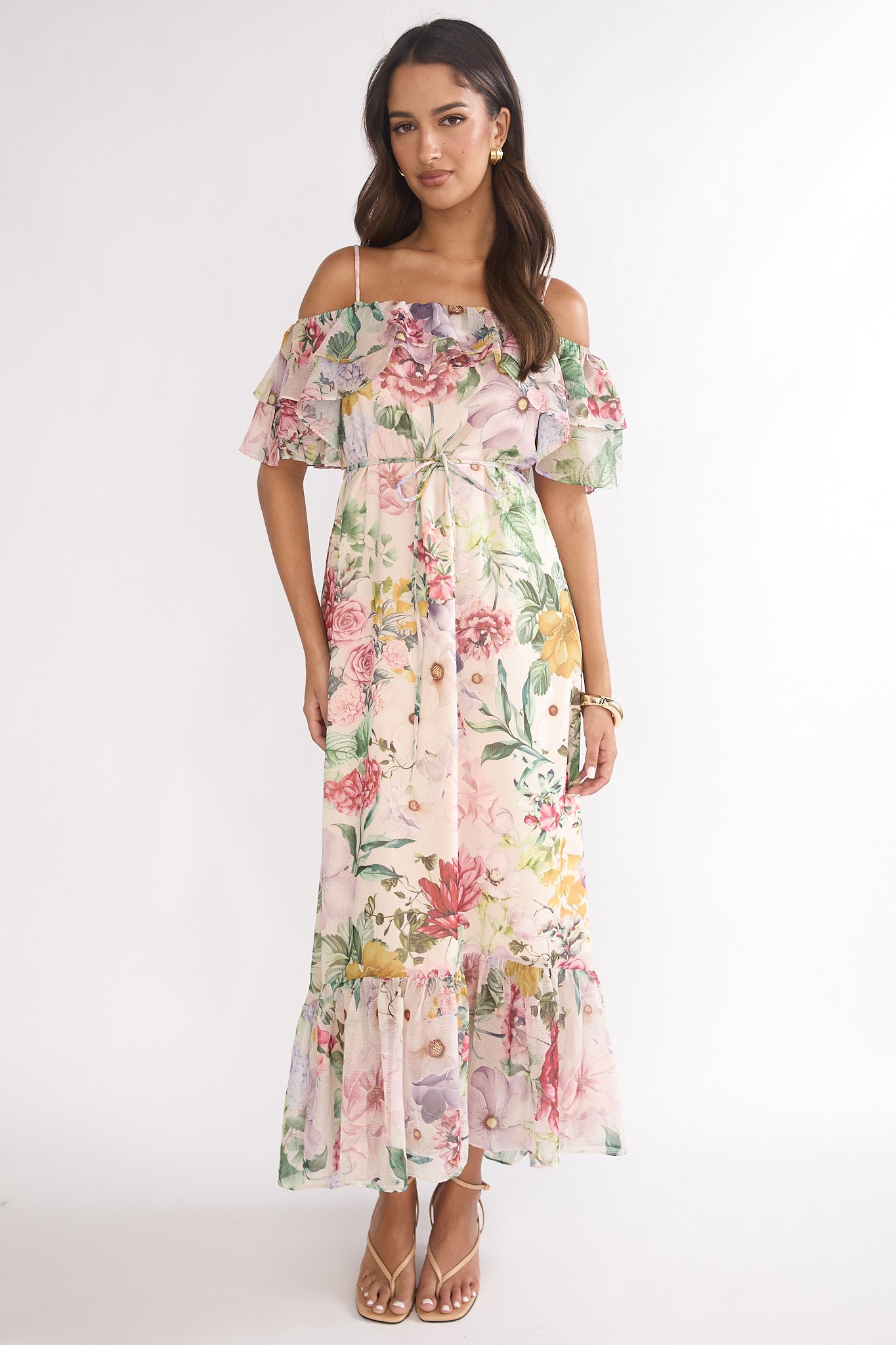 Ivelle Off-Shoulder Ruffle Maxi Dress Floral