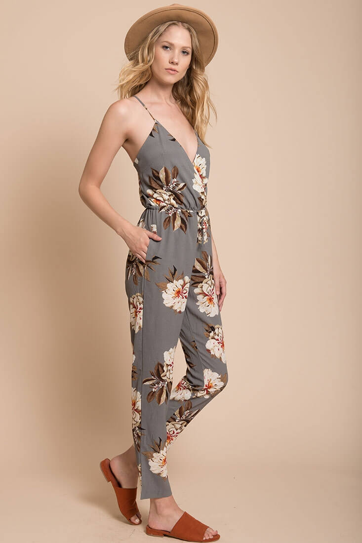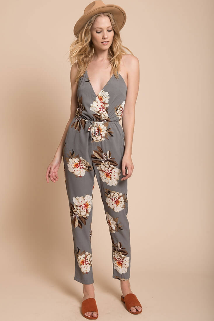 Feisty and flattering floral jumpsuit perfect for those days the sun is calling your name. Pair with brown wedges for a cool, breezy vibe.