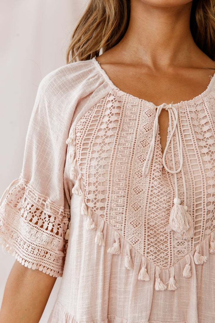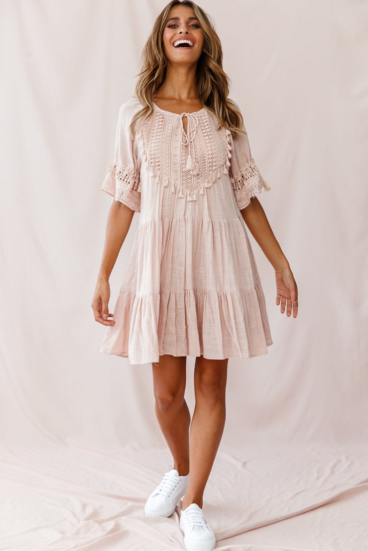 Perfect for warm days strolling the beach boardwalk with bae or a picnic with your besties, our Jada dress is a must have. Partially lined and featuring a drawstring tie neckline, relaxed kaftan style and crochet and tassel embellishment. This dress looks great styled with some canvas wedges and a fedora or crisp white sneakers for a playful look.