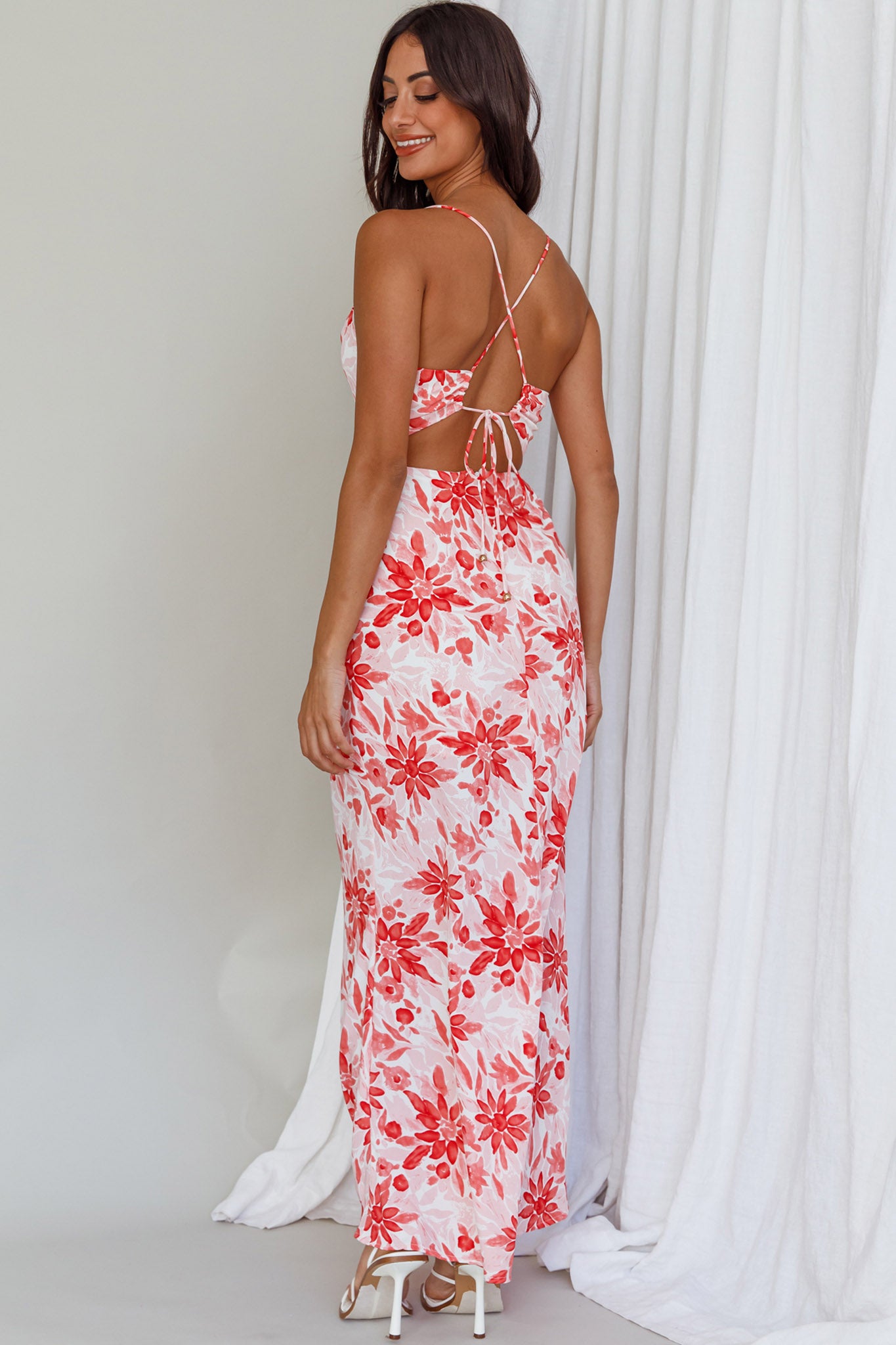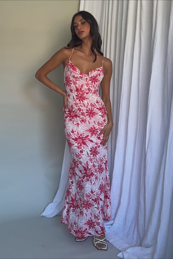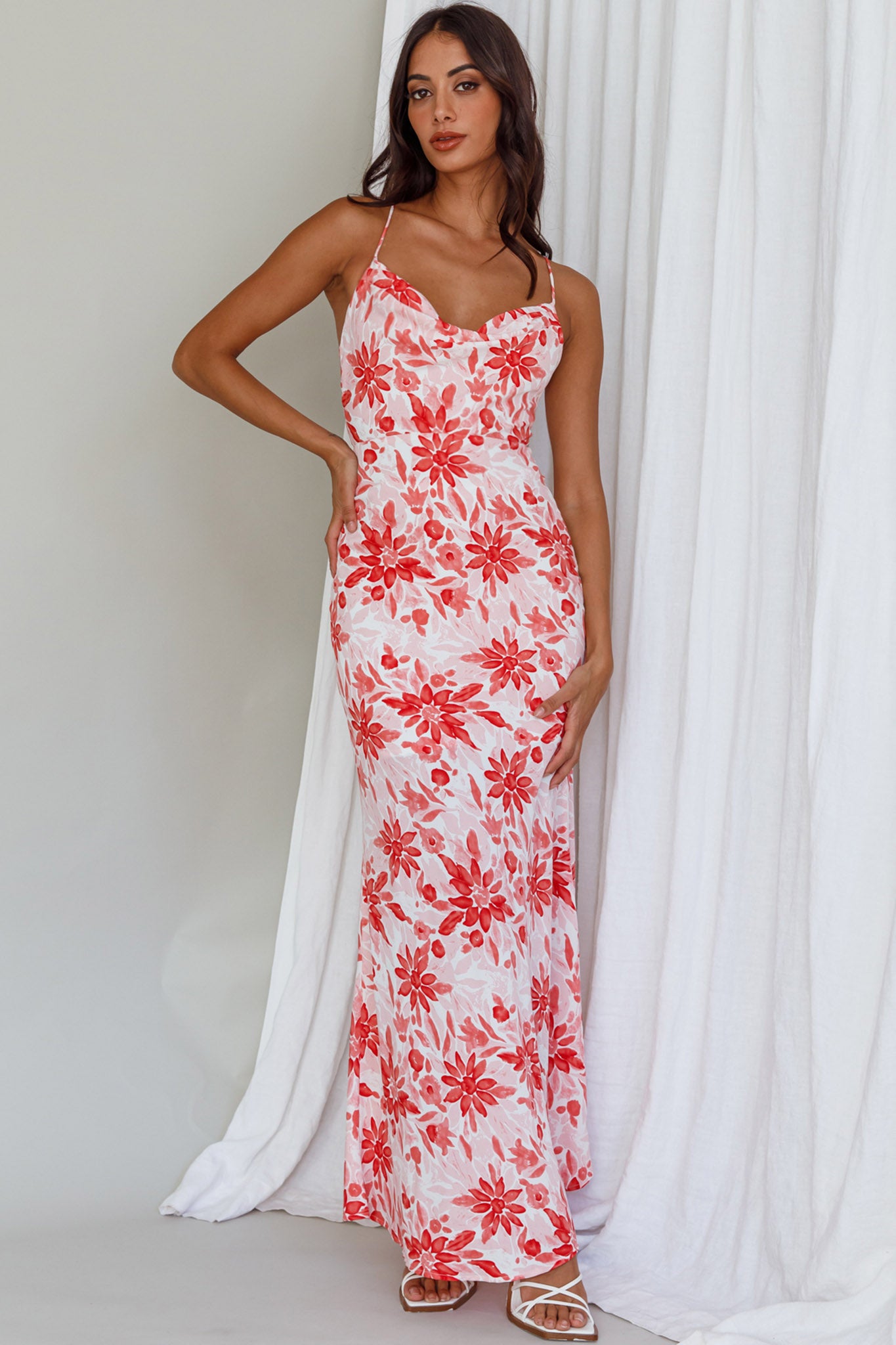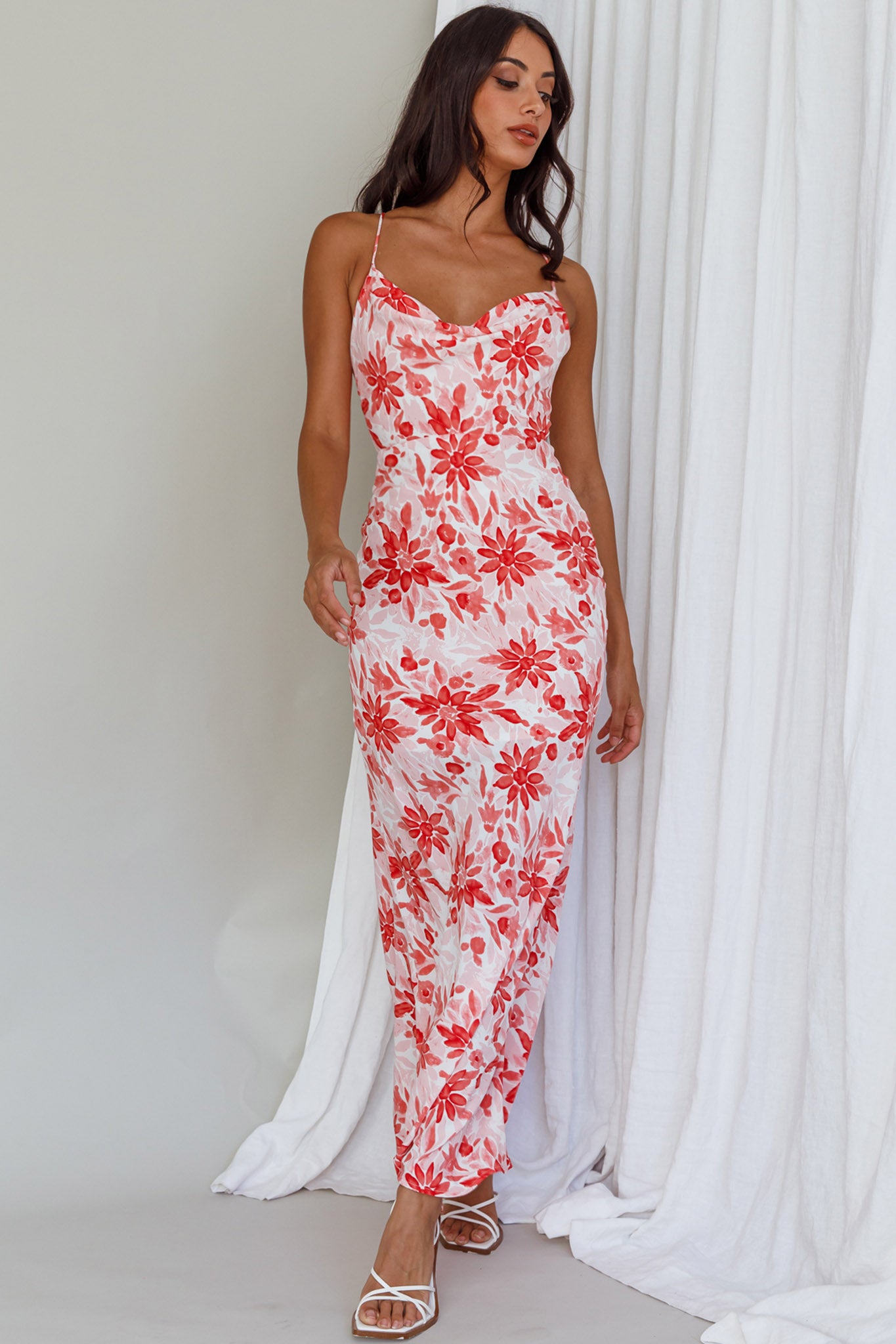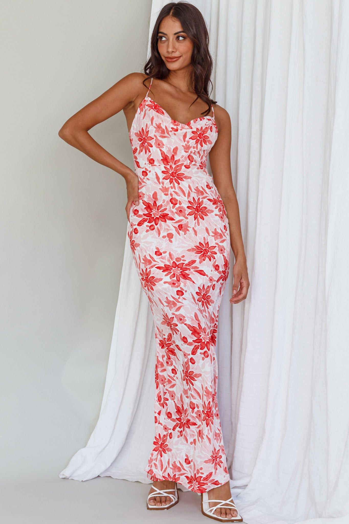 We are head over heels for our chic Janaina maxi dress. Featuring a cowl neck and a strappy back. It's perfect for sunset happy hours with your besties. Team it with strappy, white heels and hoop earrings for an on-trend look we are loving.