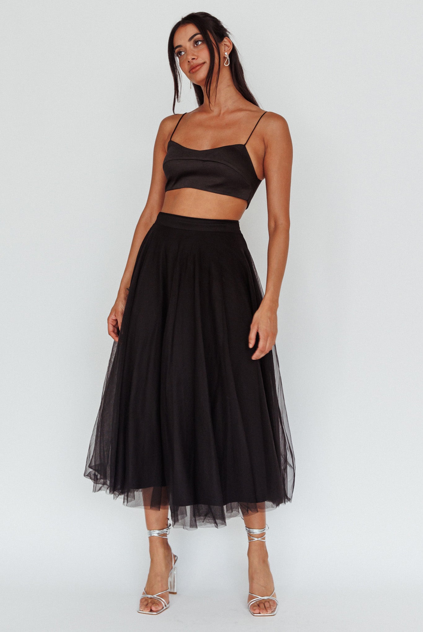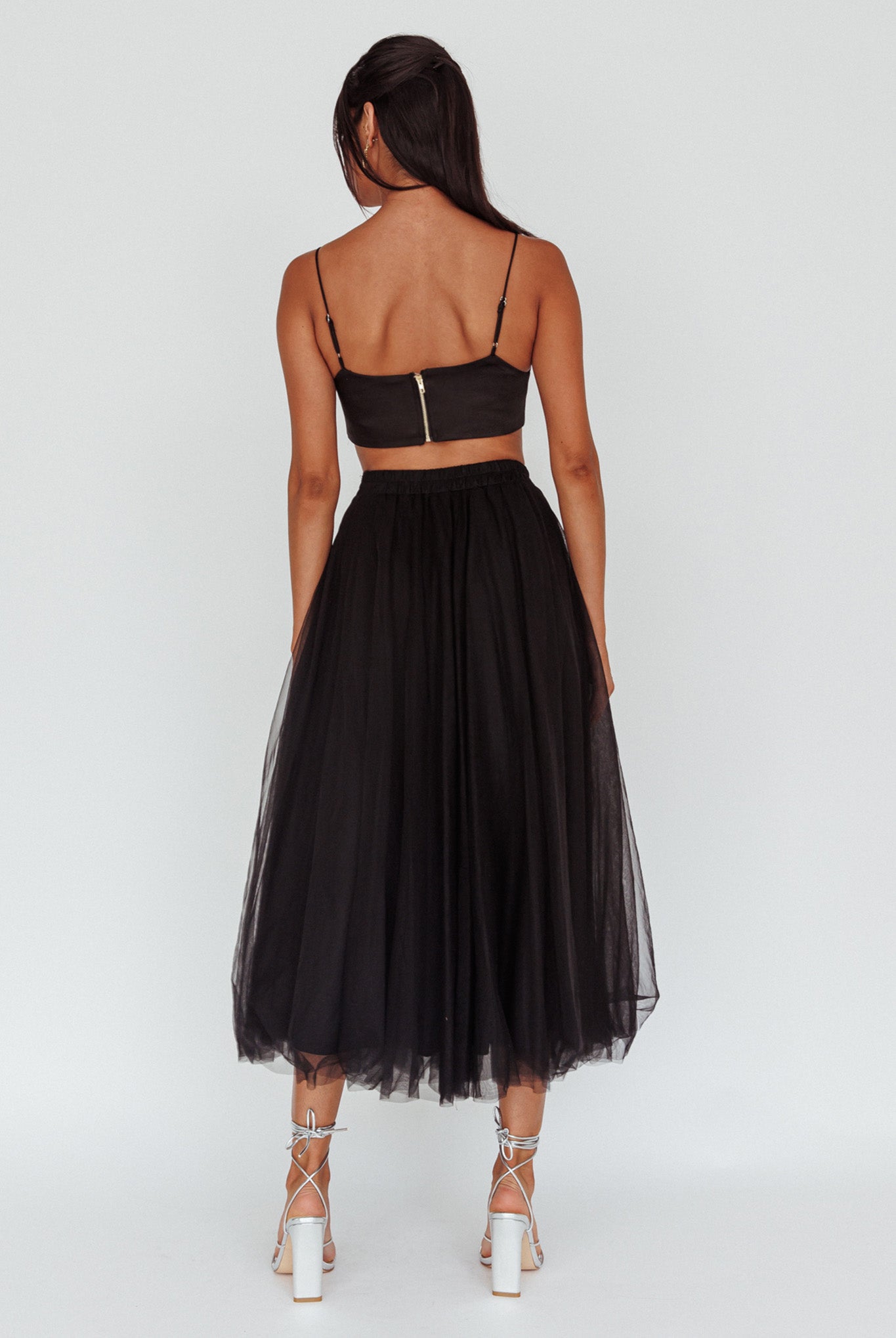 Jasmine Organza Mesh Elasticated Waist Midi Skirt Black