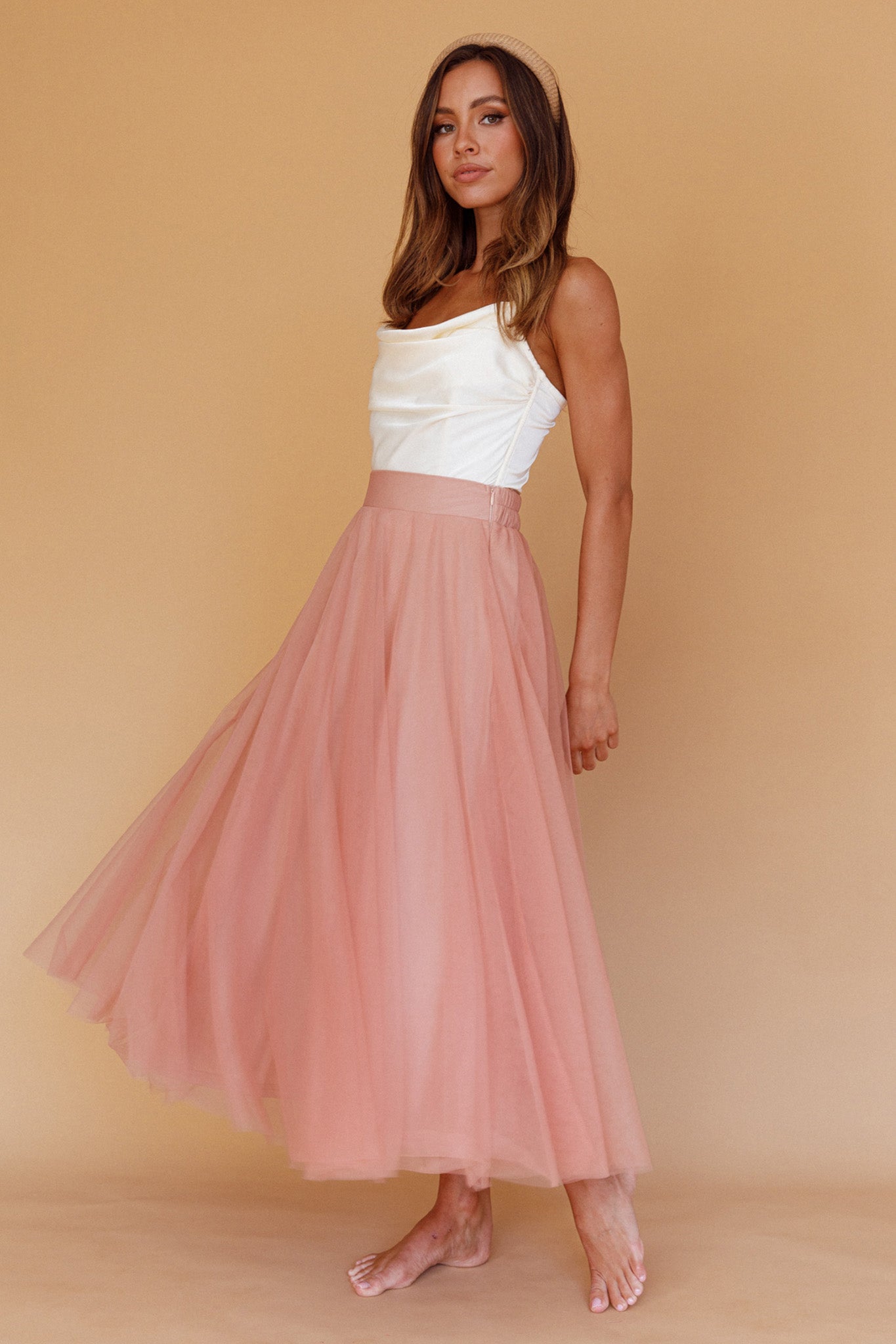 Jasmine Organza Mesh Elasticated Waist Midi Skirt Lipstick