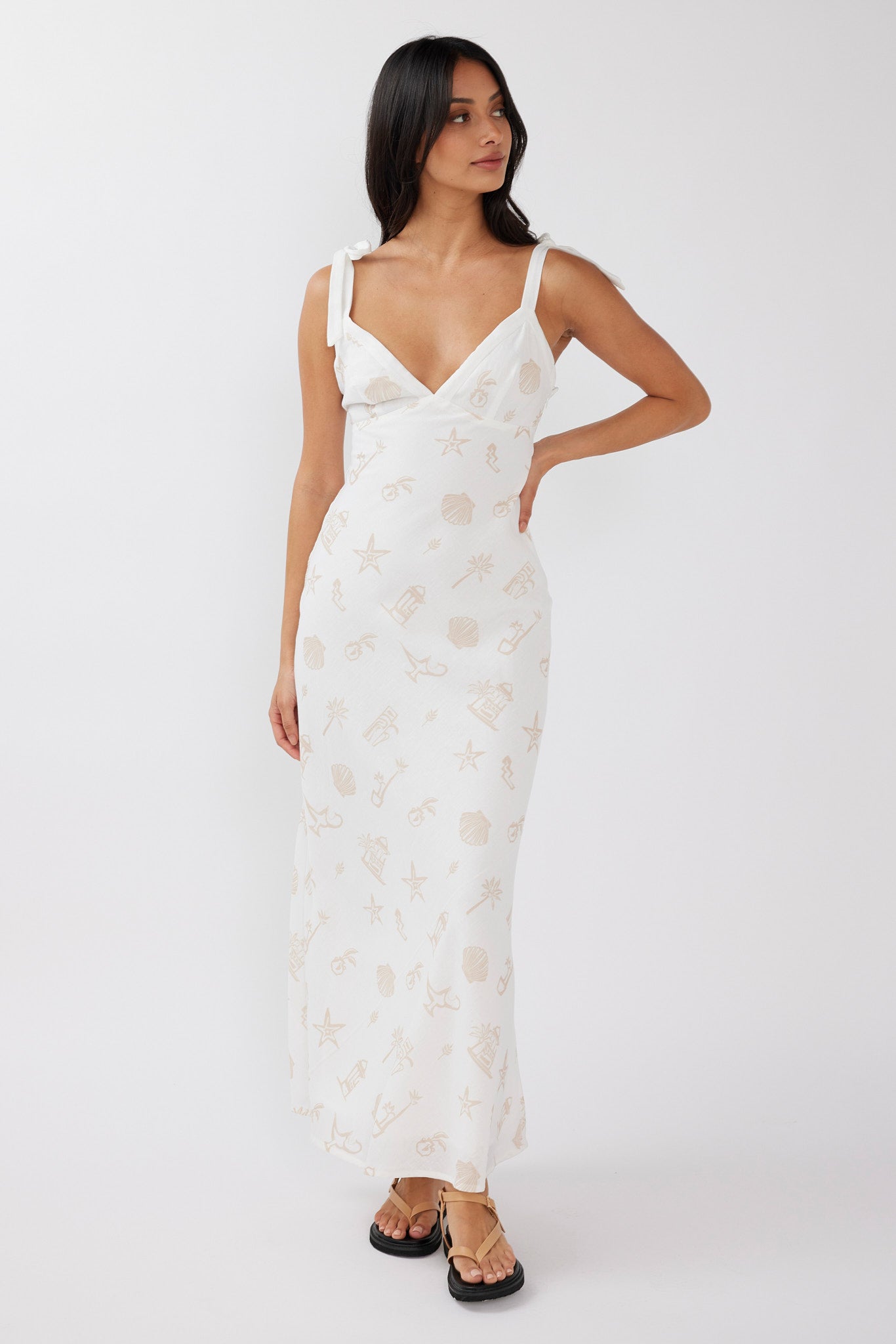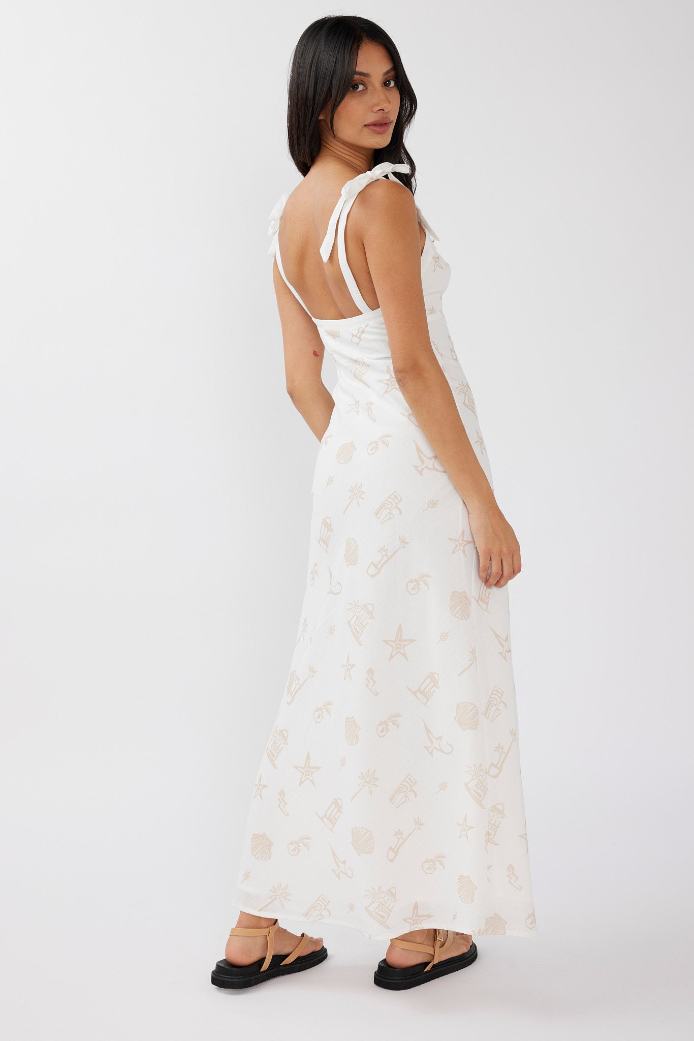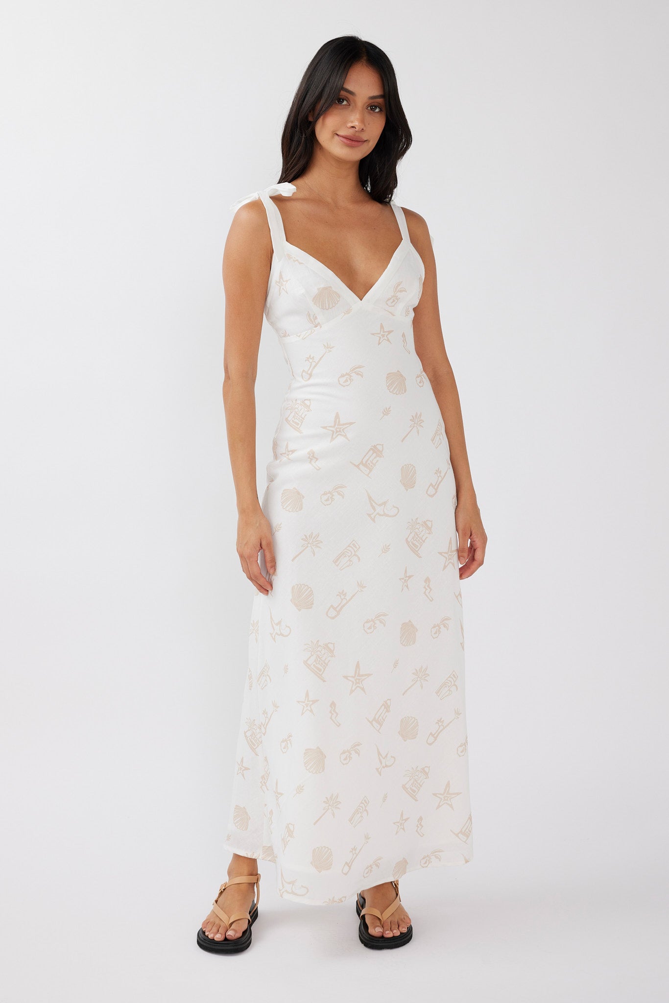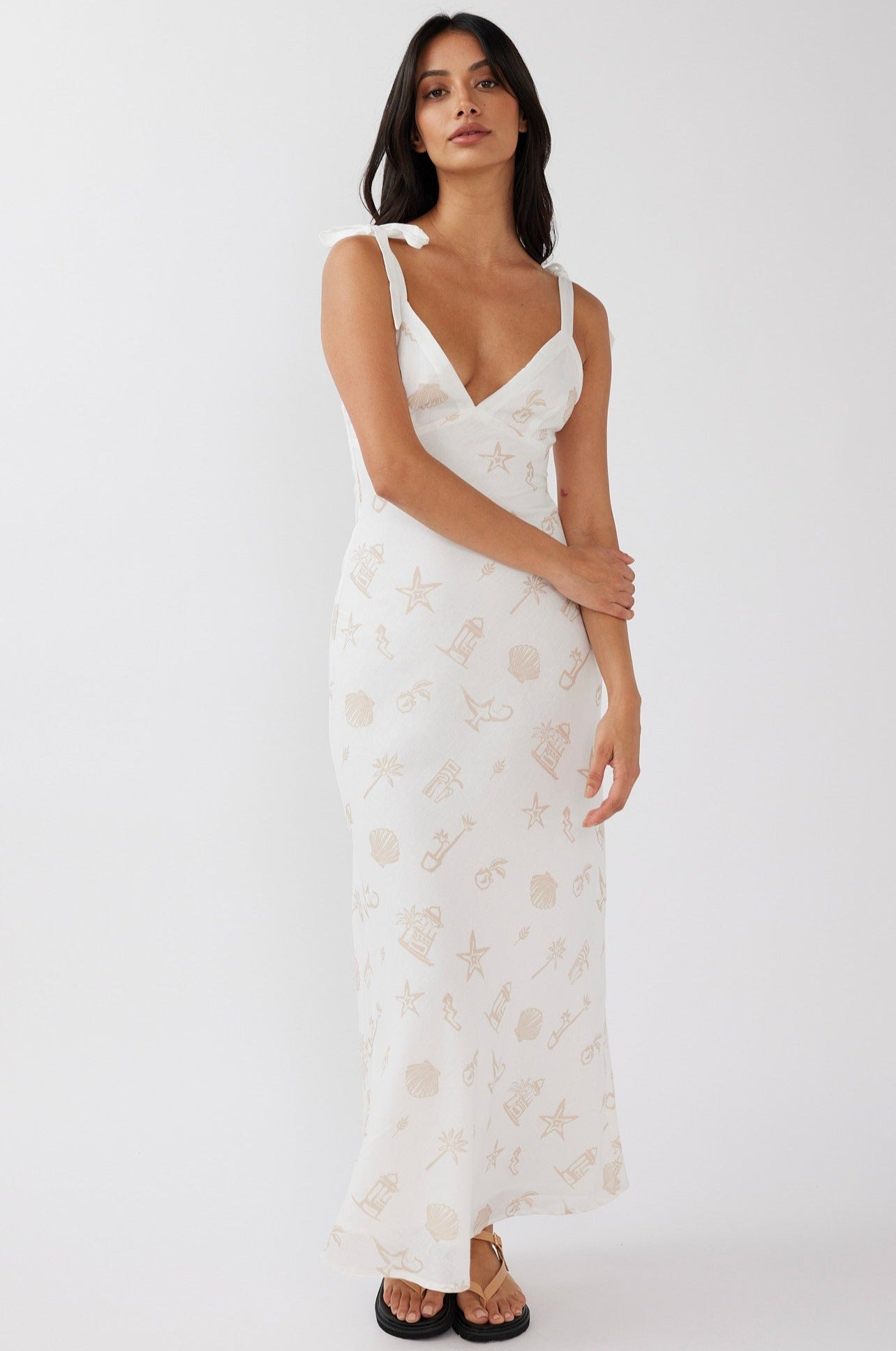 Jaya Tied Shoulder Maxi Dress Print Beige
