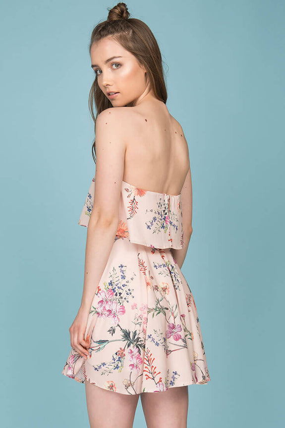 Gardens grow on this gorgeous dress with draped connected cropped ruffle top. Wear with your fave sandals.