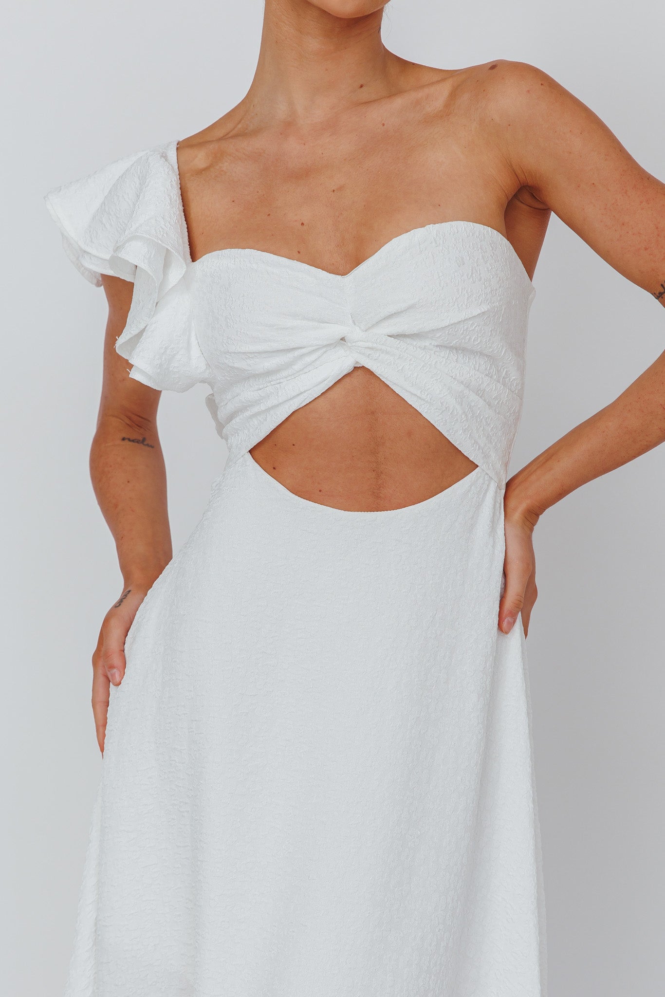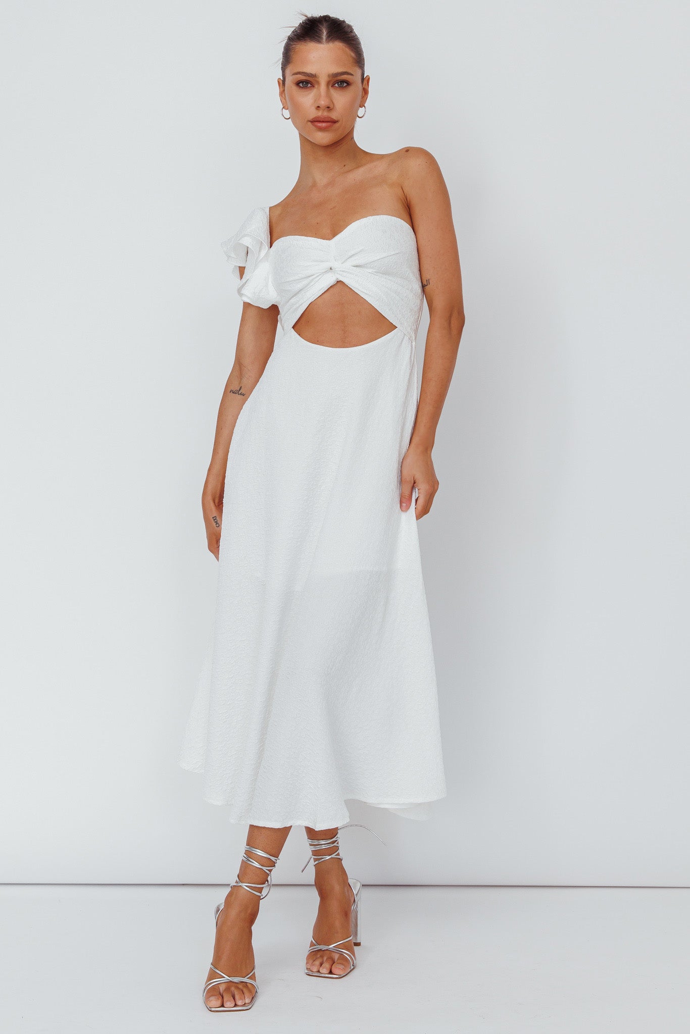 Turn heads in our gorgeous Jolina midi dress. Featuring a one-shoulder style and pretty twist detail in the bust. It's perfect for chic dinner dates with your besties. Team it with mules and a tote for a look we are loving.
