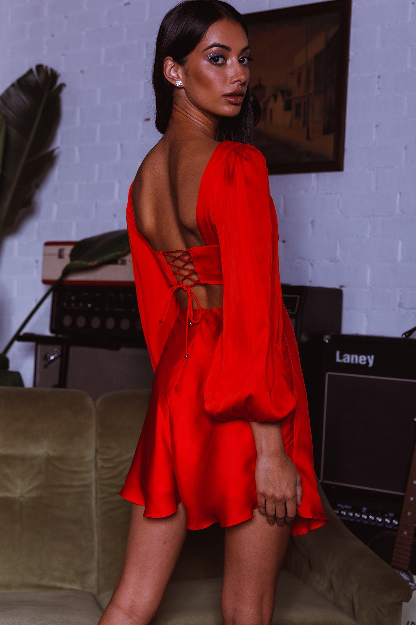 Make a statement in our gorgeous Jonah dress. Featuring a keyhole bust and long, balloon sleeves. Perfect for a wedding or special occasion teamed with nude mules and a clutch. Super cute!