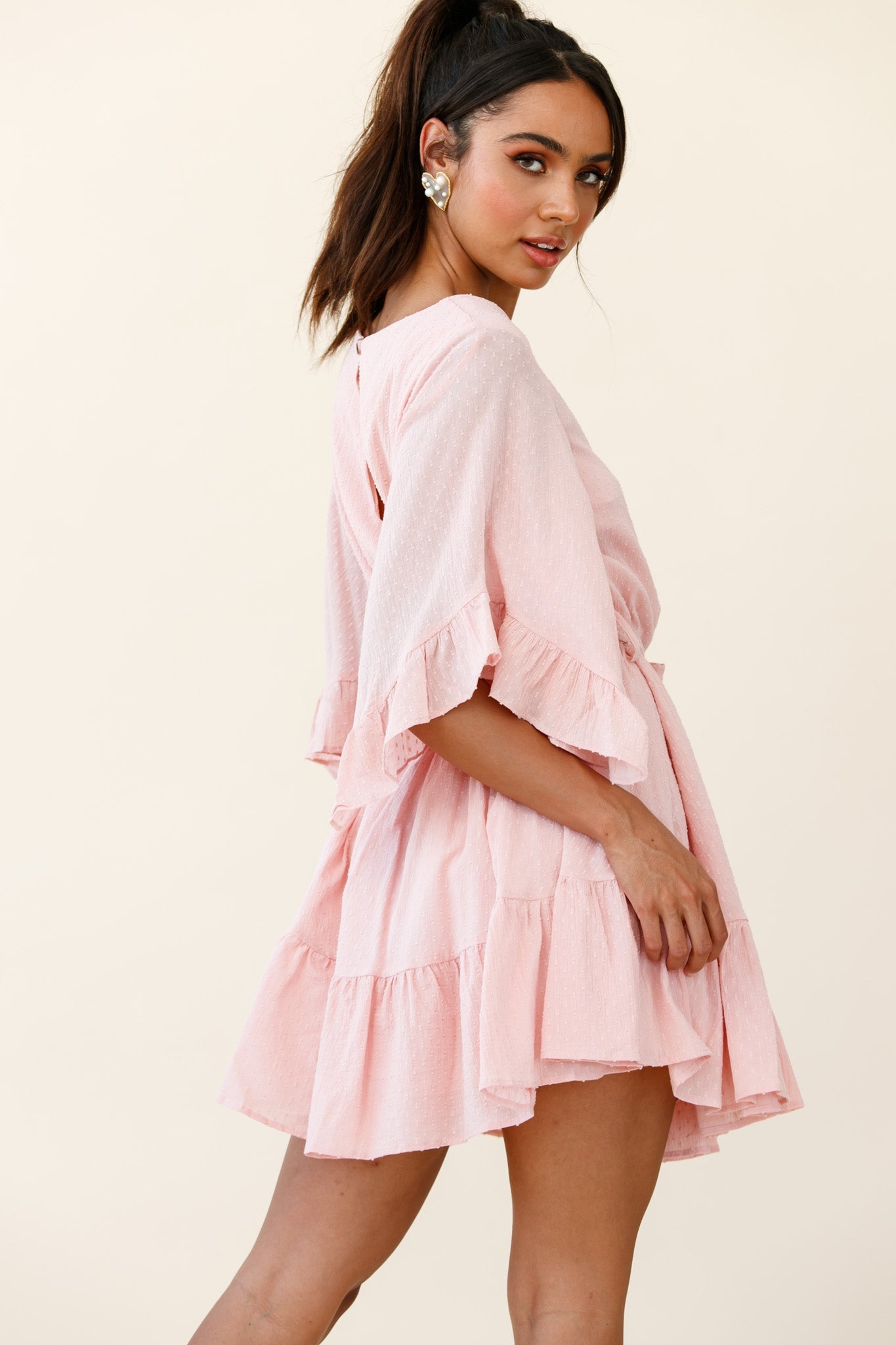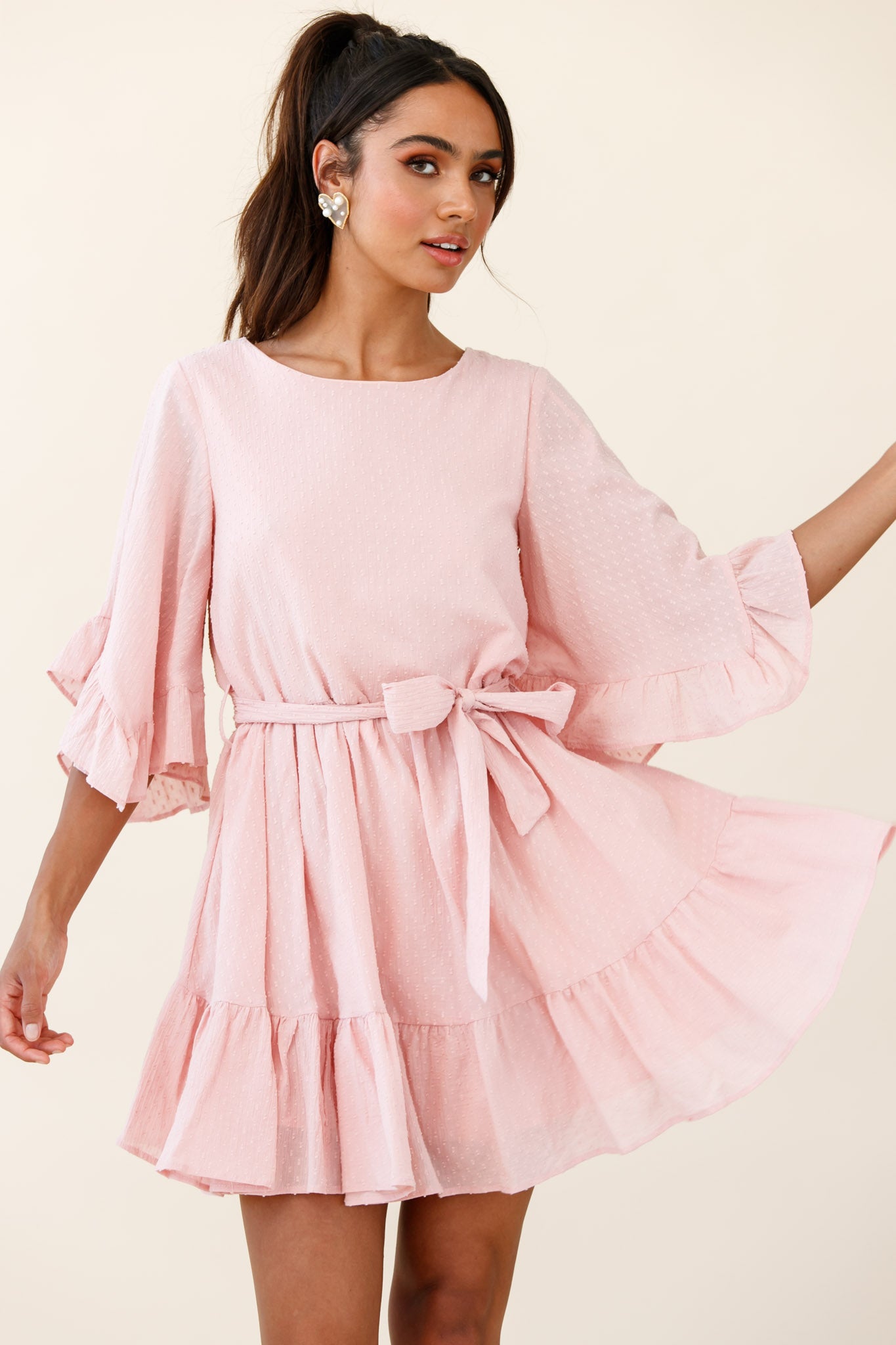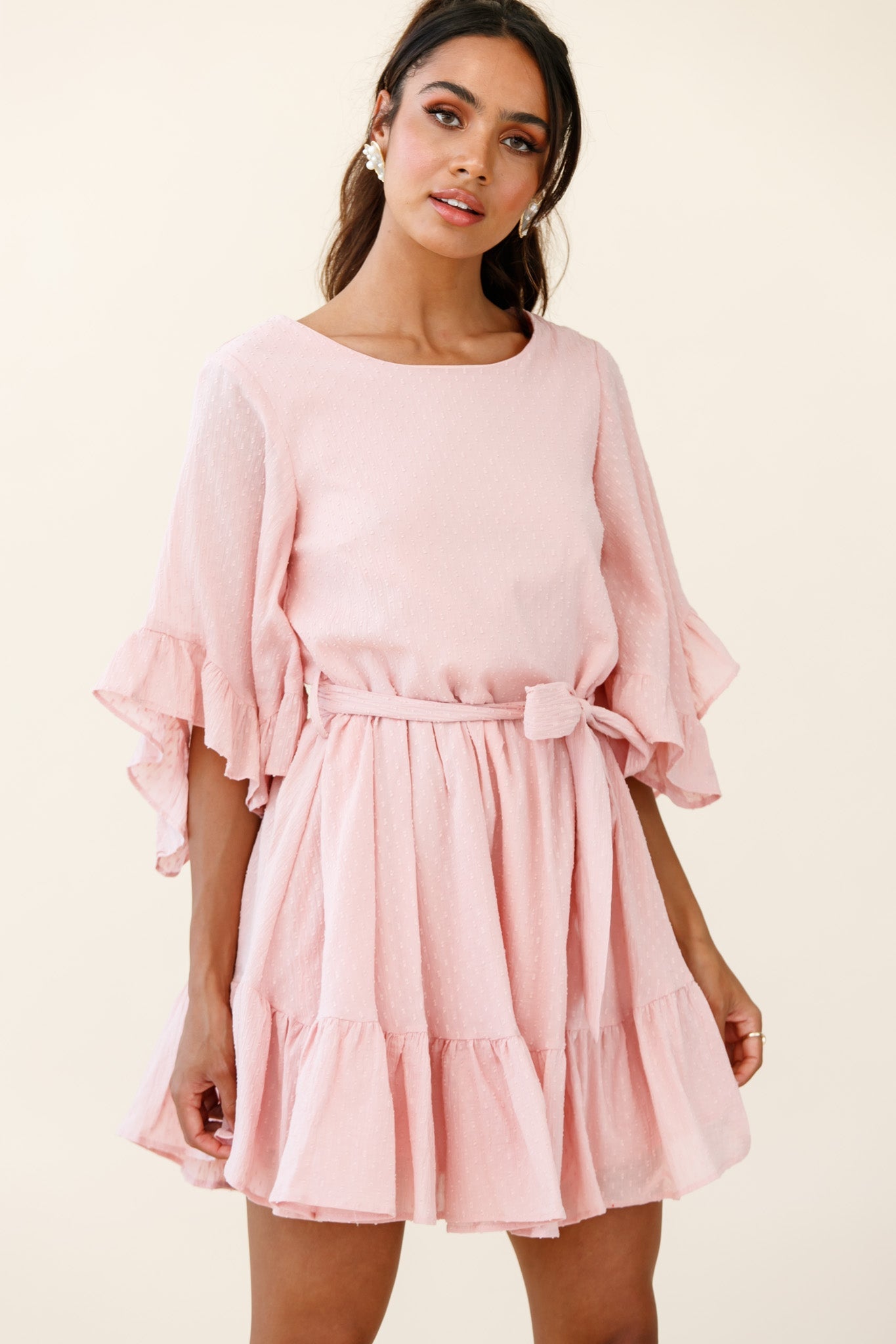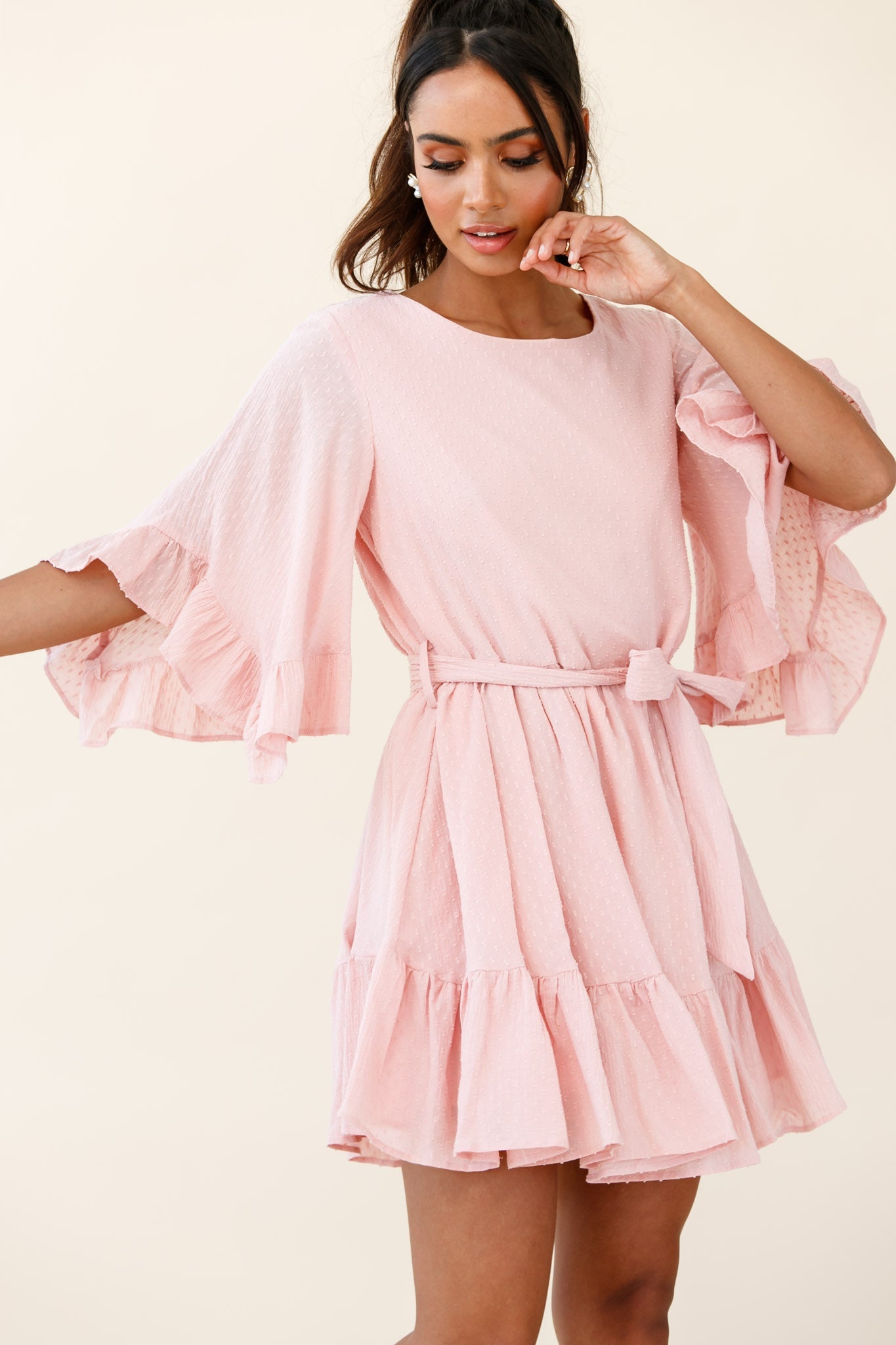 Joni Batwing Sleeve Waist Tie Dress Pink